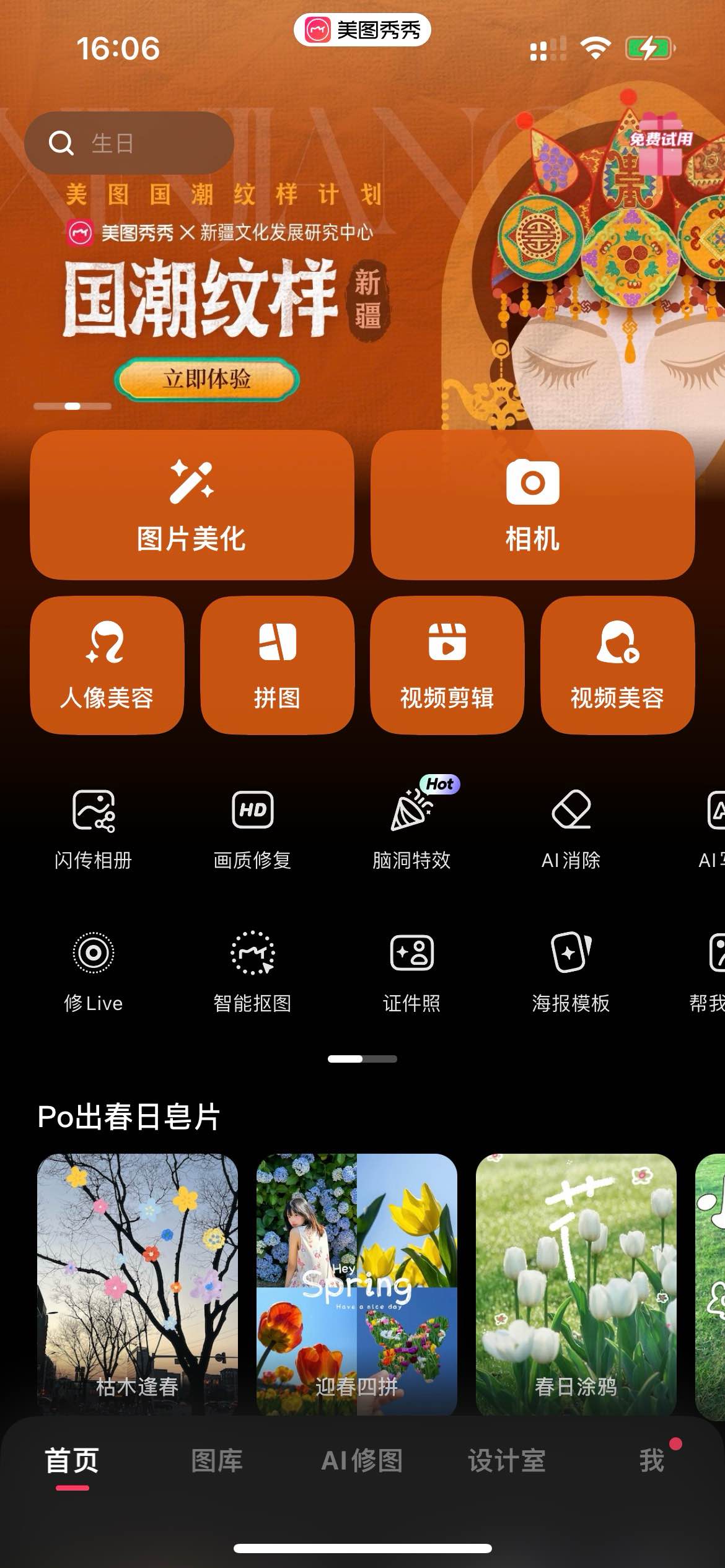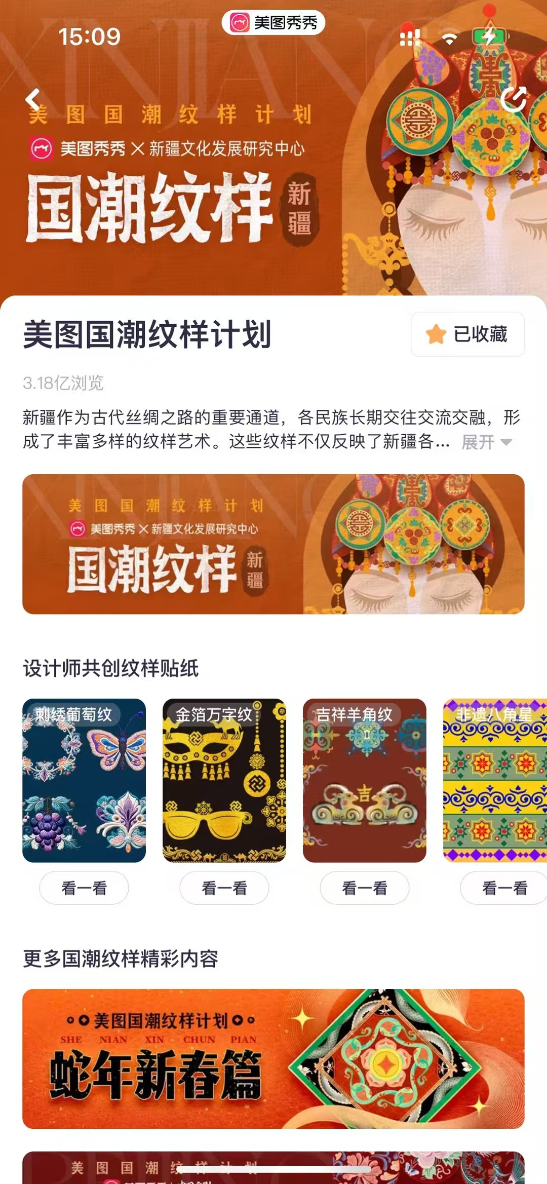 美图秀秀APP内置的“美图国潮纹样计划·国潮纹样新疆篇”推广体验页面。
