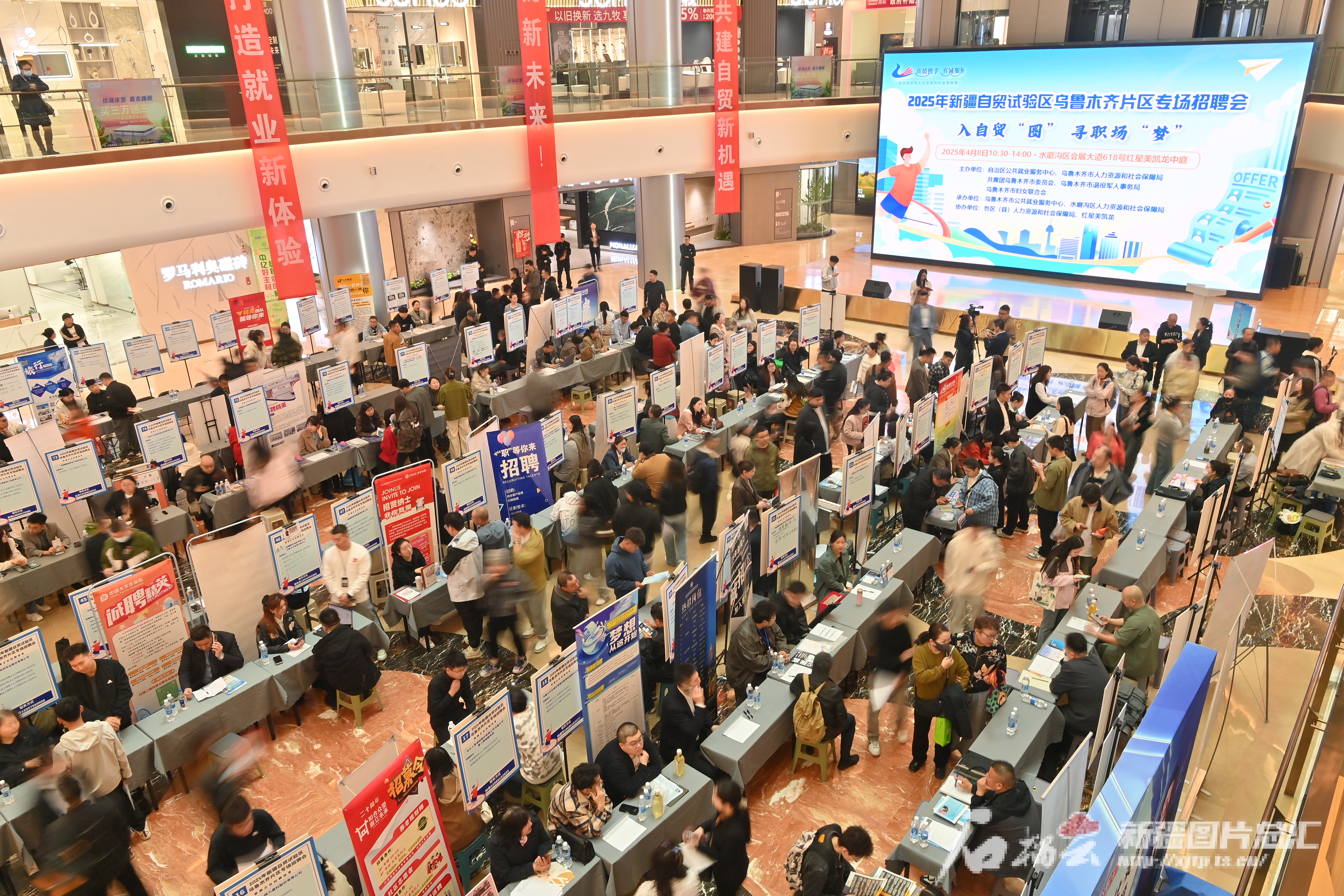 天山网-新疆日报讯(记者李雄心摄影报道)4月8日,2025年新疆自贸试验区乌鲁木齐片区专场招聘会在乌市水磨沟区红星美凯龙中庭举行。