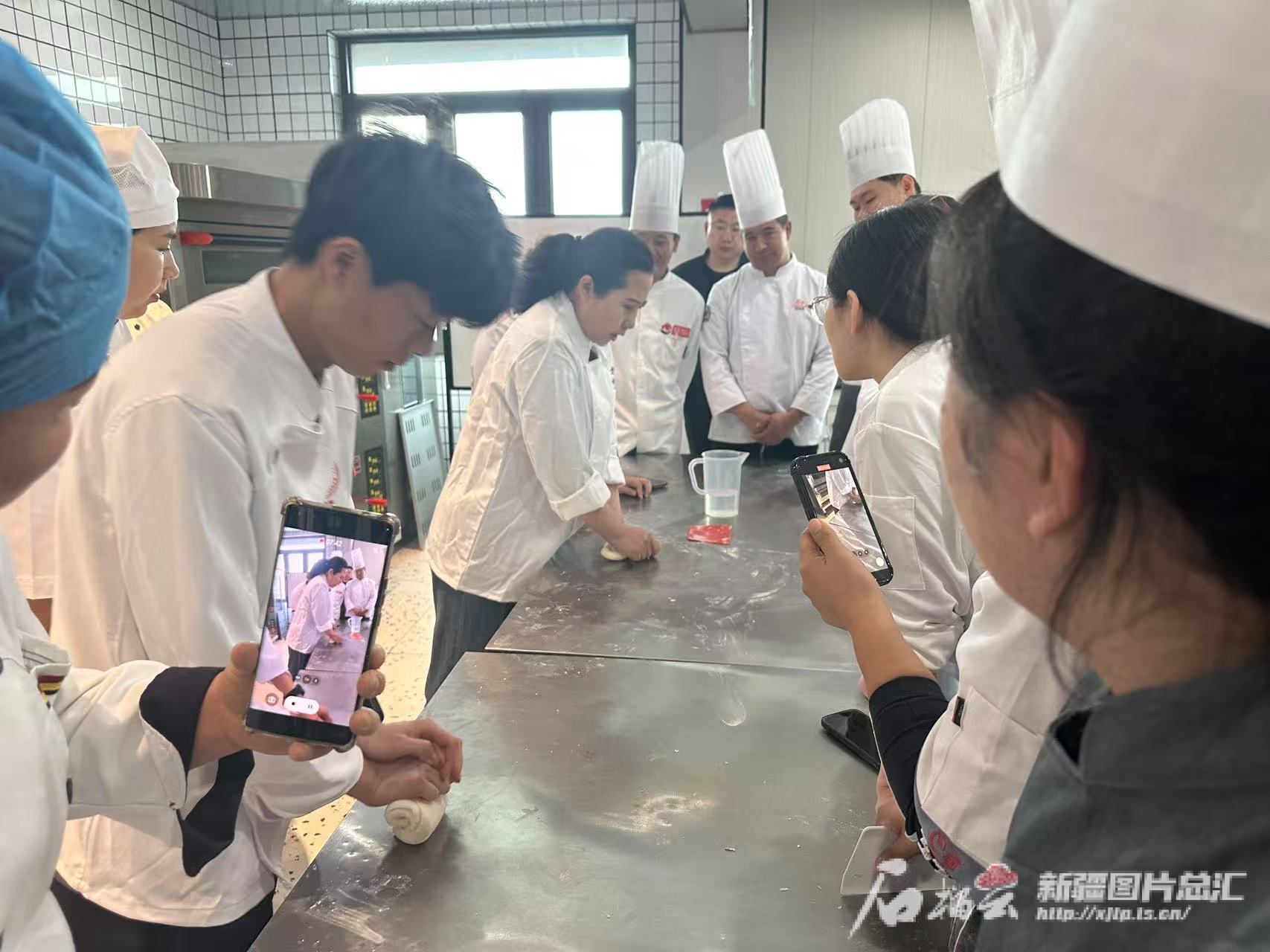 4月10日,在位于乌鲁木齐高新技术产业开发区(新市区)的新疆北方职业技能培训学校实训室内,参加中式面点项目集训选拔的选手在教练指导下练习。记者 赵春华摄