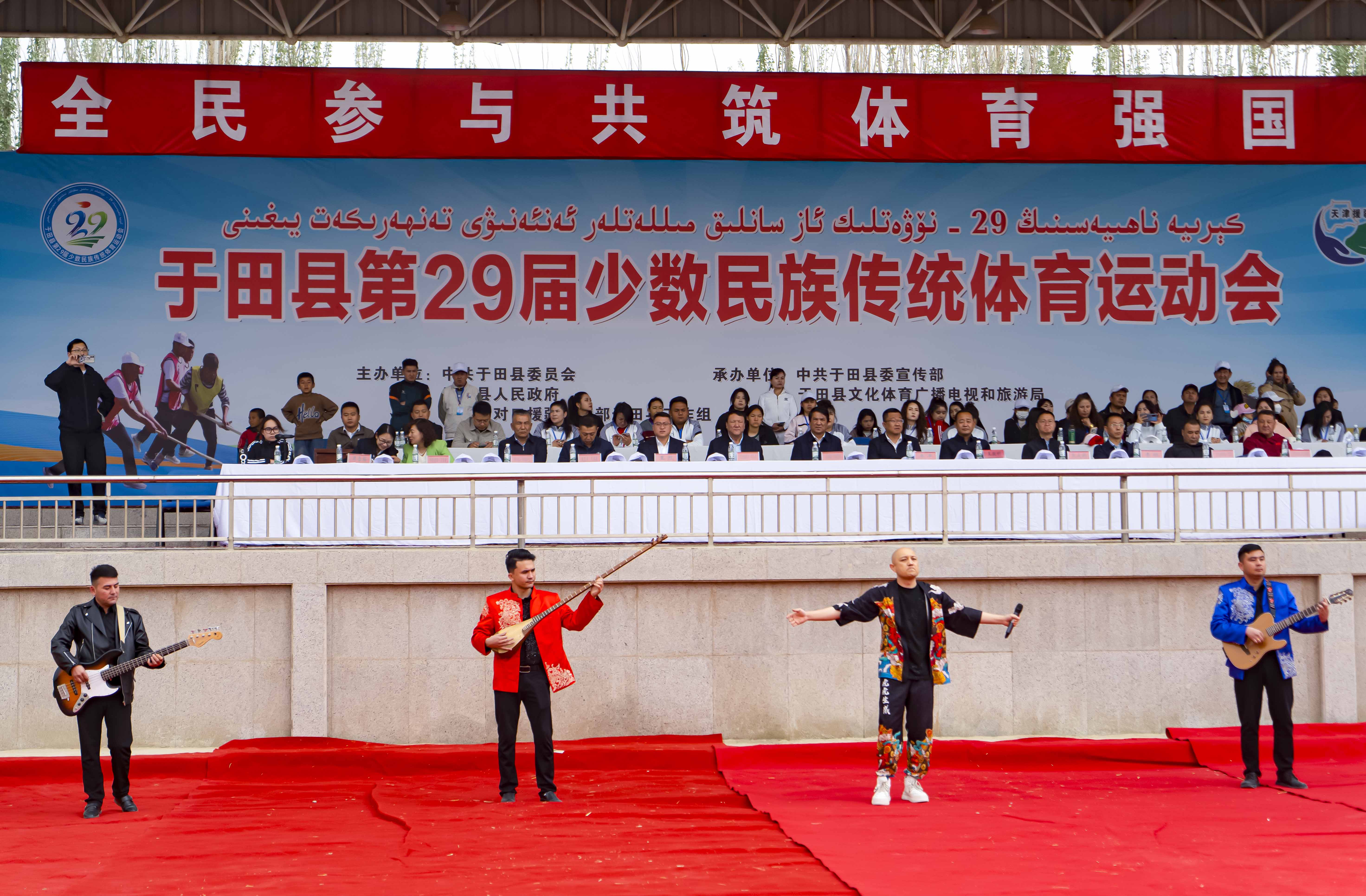 于田县第二十九届少数民族传统体育运动会开幕式现场。(麦尔阿巴·麦麦提敏 摄)