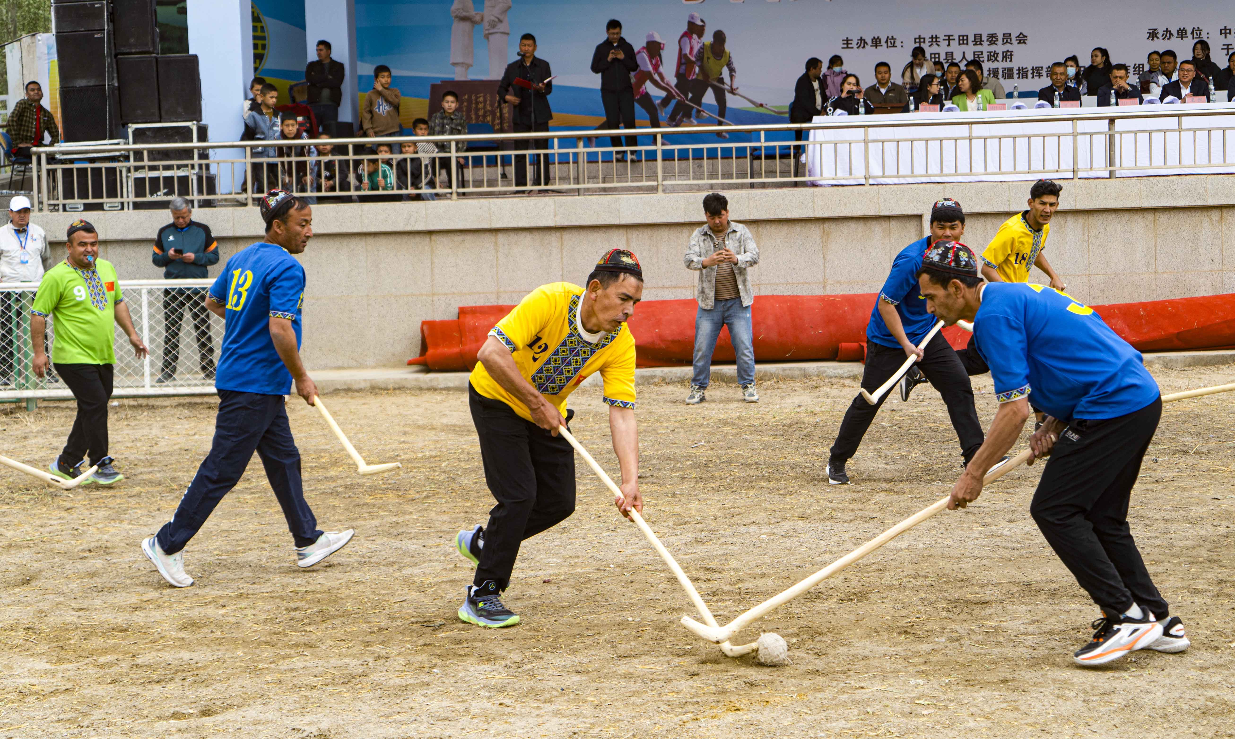 在赛场上,各族健儿尽显英姿,演绎着一场场“速度与激情”的角逐。本届运动会设置的各类比赛项目大多源于农牧民的生活,如速度赛马是农牧民日常的生活技能,麦热球是他们日常的娱乐活动。运动员们在赛场上的比拼,不仅将日常生活呈现给观众,还更好地展现了新时代于田乡村振兴的新面貌。