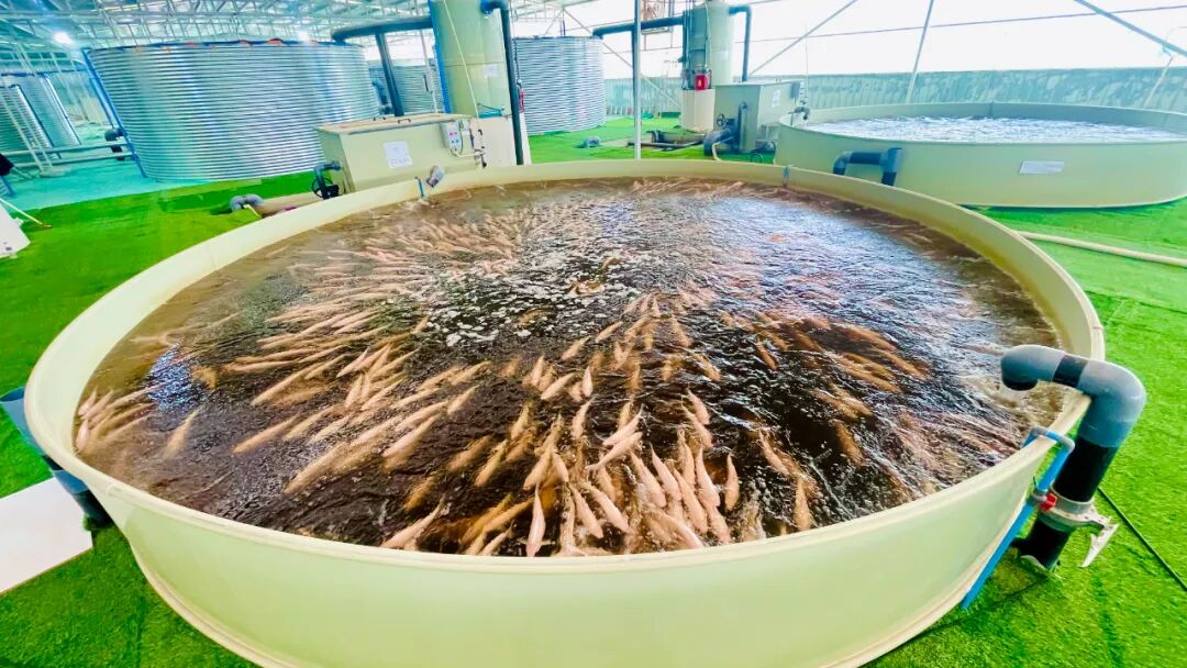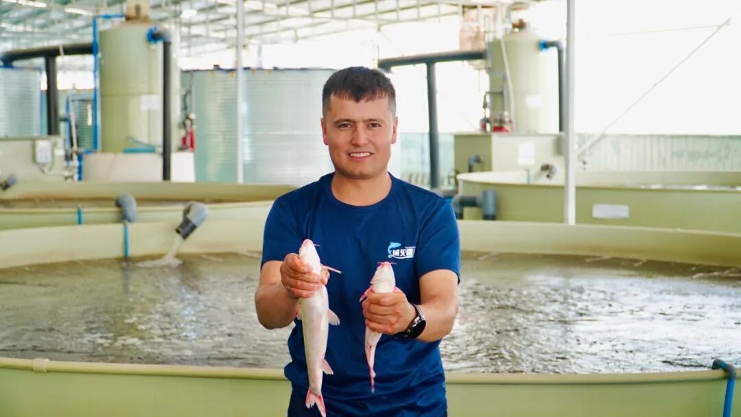 2024年11月,和田县英艾日克乡恰木古鲁克村的和田域见疆来水产养殖有限责任公司从成都引进了3吨共计6万多尾鱼苗。这批鱼苗种类丰富多样,涵盖了银鳕鱼、鲈鱼、黑鱼、黄河鲶鱼、胭脂鱼和锦鲤等特色品种。它们被工人们精心投放到56座现代化养殖池中,开启了在和田的“成长之旅”。公司采用室内人工水产养殖模式,恒温、恒湿、恒氧的环境为鱼苗提供了绝佳的生长条件,仿佛为它们量身定制了一个温暖的“家”。