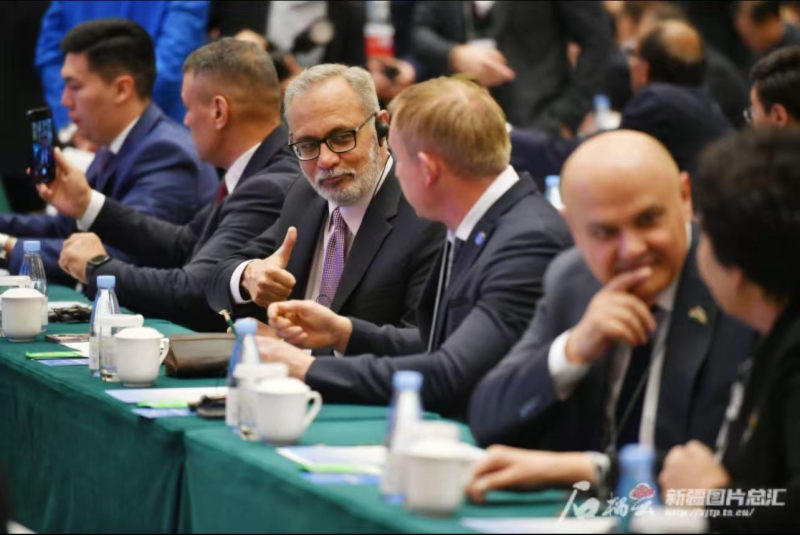 4月23日,由中共中央对外联络部和中共新疆维吾尔自治区委员会联合主办的上海合作组织政党论坛在新疆乌鲁木齐举行。石榴云/新疆日报记者 崔志坚摄