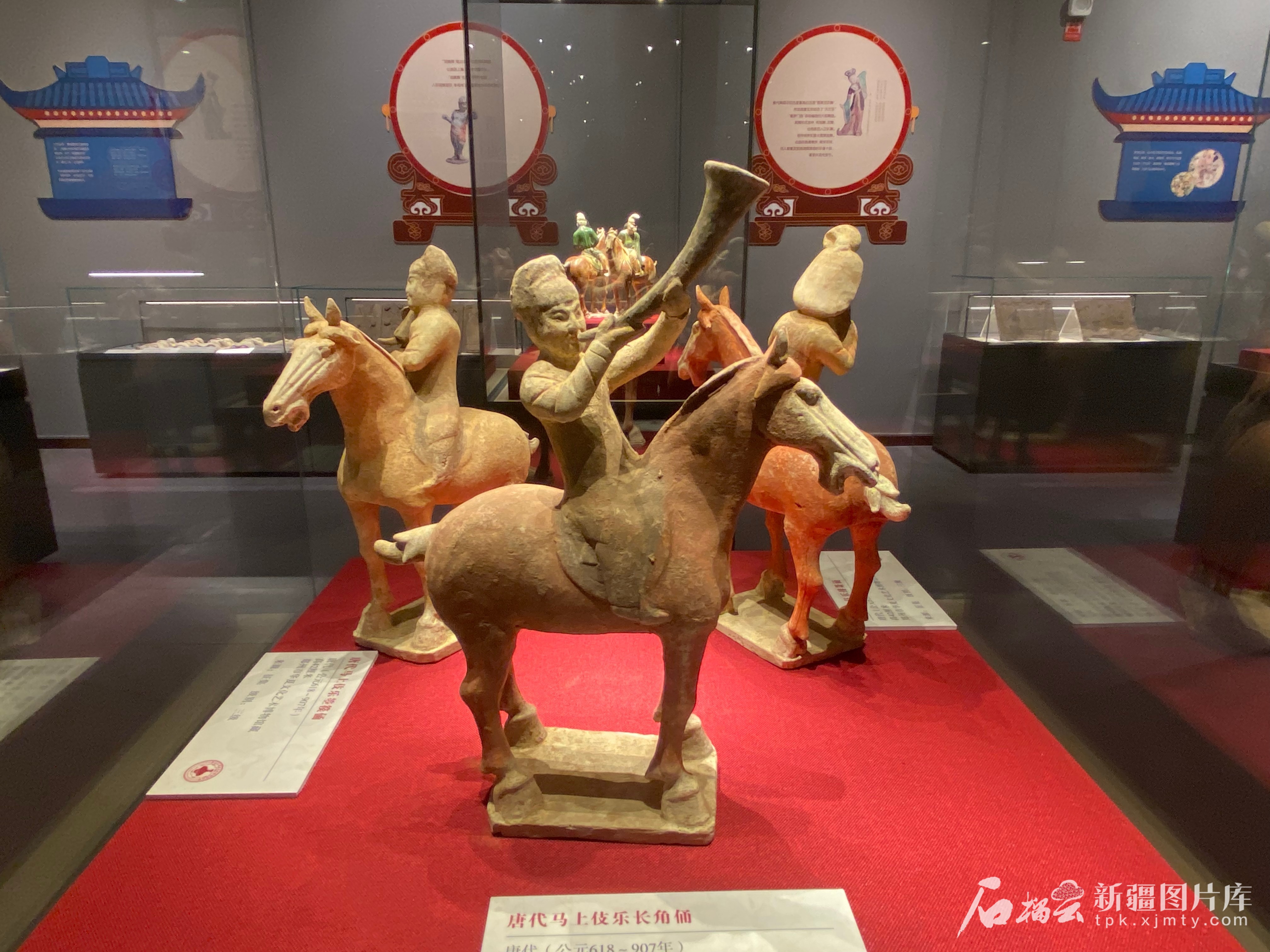 唐代马上伎乐长角俑。石榴云/新疆日报记者 赵梅摄