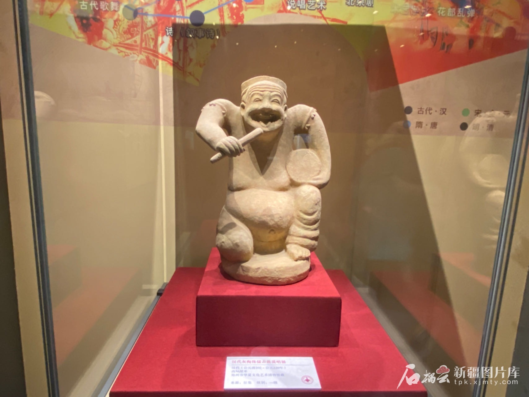 汉代灰陶侏儒击鼓说唱俑。石榴云/新疆日报记者 赵梅摄