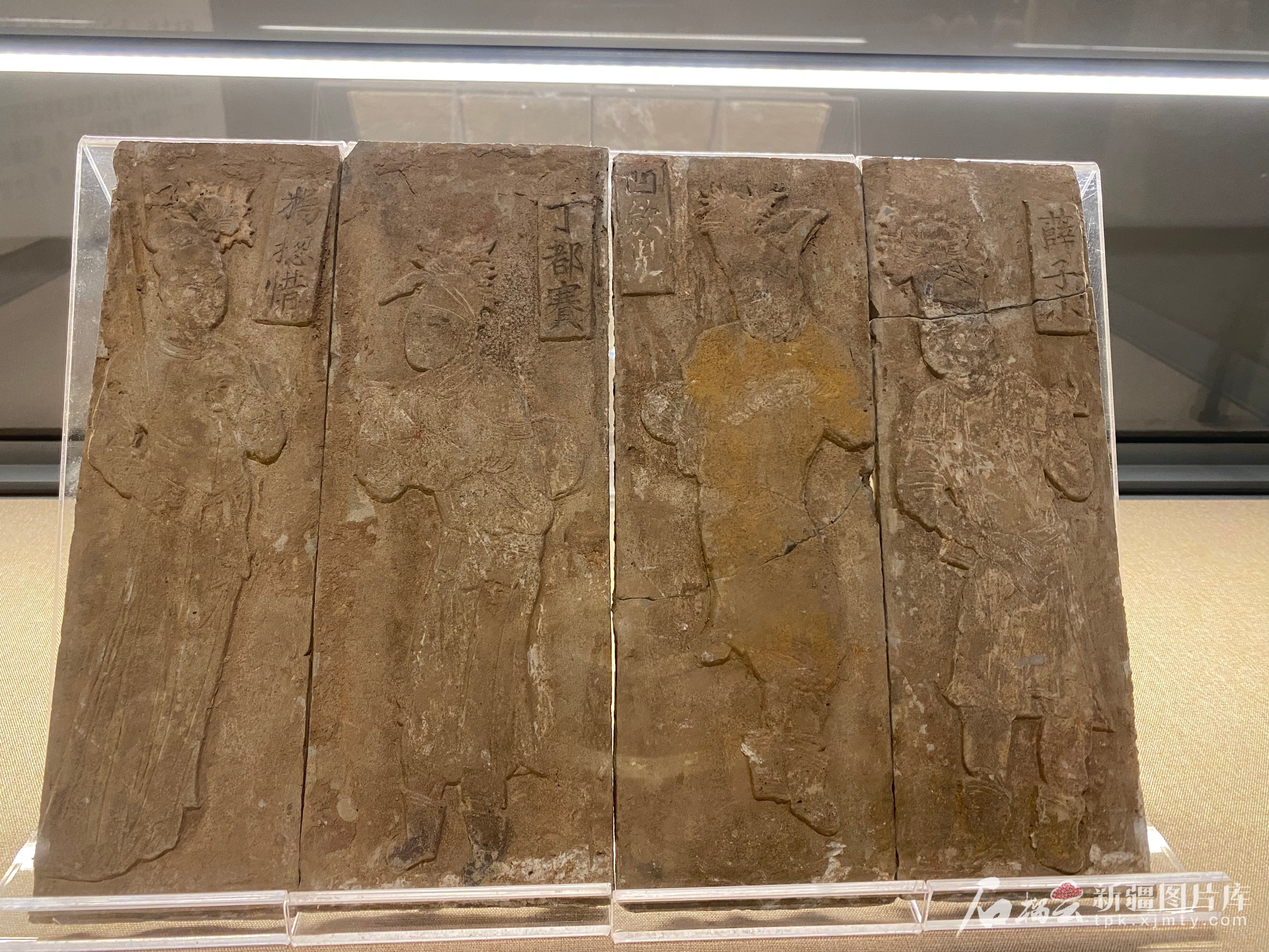 北宋平剔线刻杂剧铭文砖雕一组。石榴云/新疆日报记者 赵梅摄
