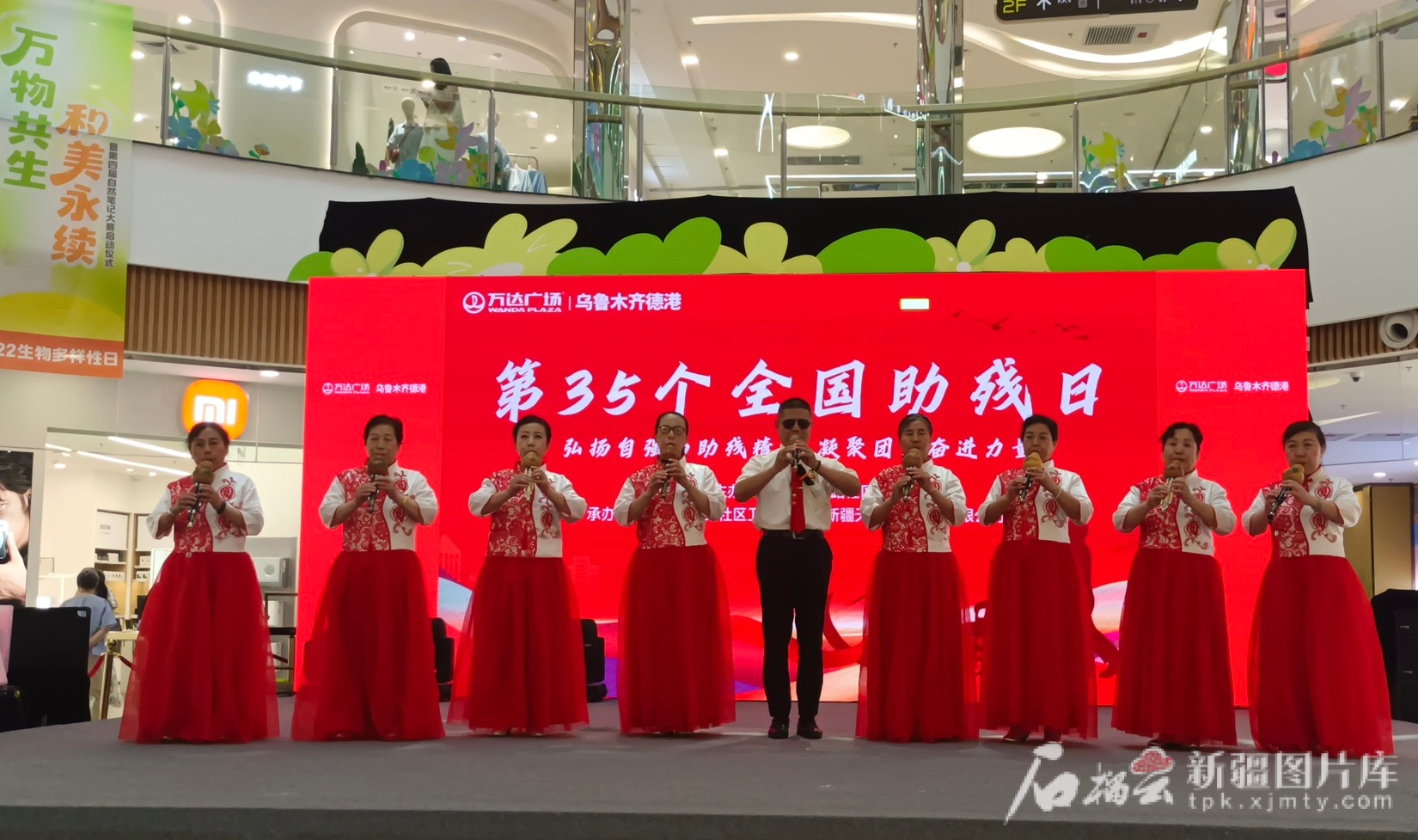 5月17日下午,在乌鲁木齐市德港万达广场内,畅想残疾人艺术团的30余名成员正在为即将开始的表演加紧排练。