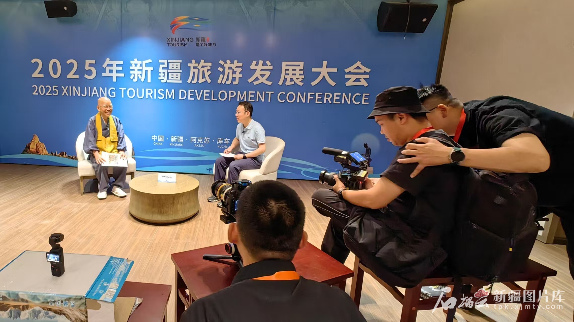 5月25日,小岛康誉先生在2025年新疆旅游发展大会上接受新疆日报记者采访。石榴云/新疆日报记者 高芳摄
