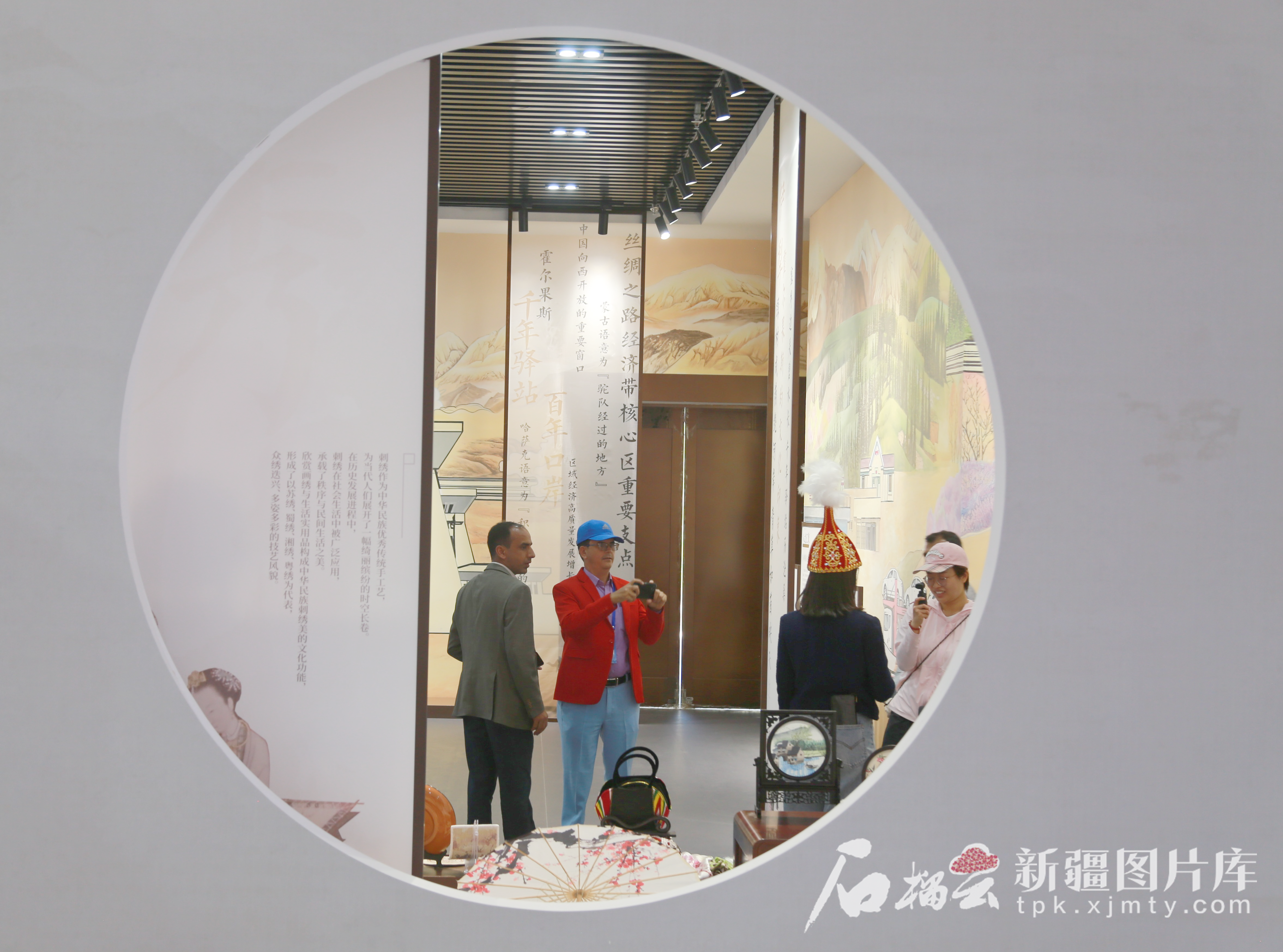 中外媒体记者在中哈霍尔果斯国际边境合作中心中国文化馆采访。石榴云/新疆日报记者 宋卫国摄