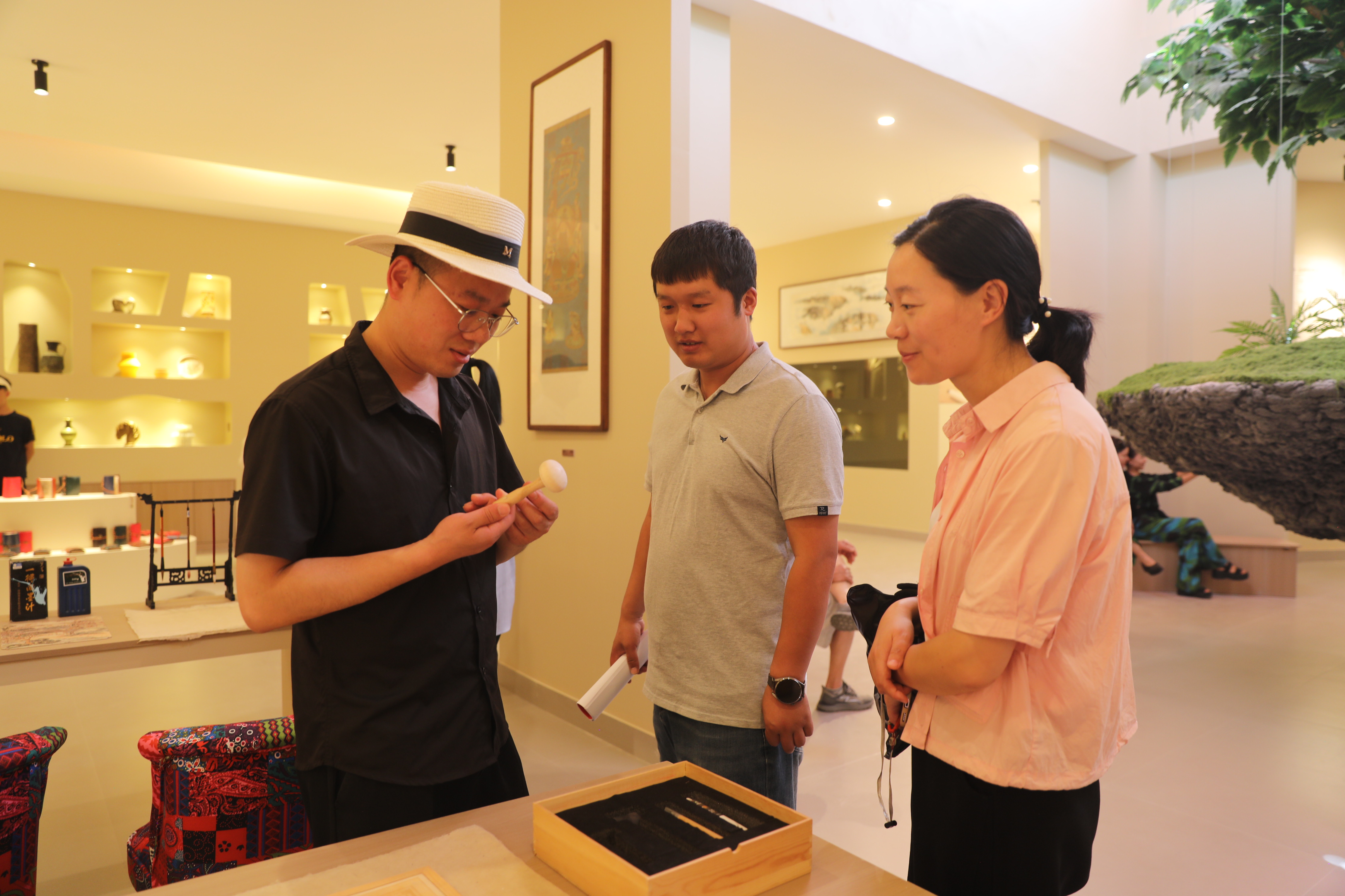 开业仪式后,游客们纷纷走进桑皮纸展示馆,在工作人员的讲解下,了解桑皮纸的历史文化、制作工艺,感受非遗的独特魅力。