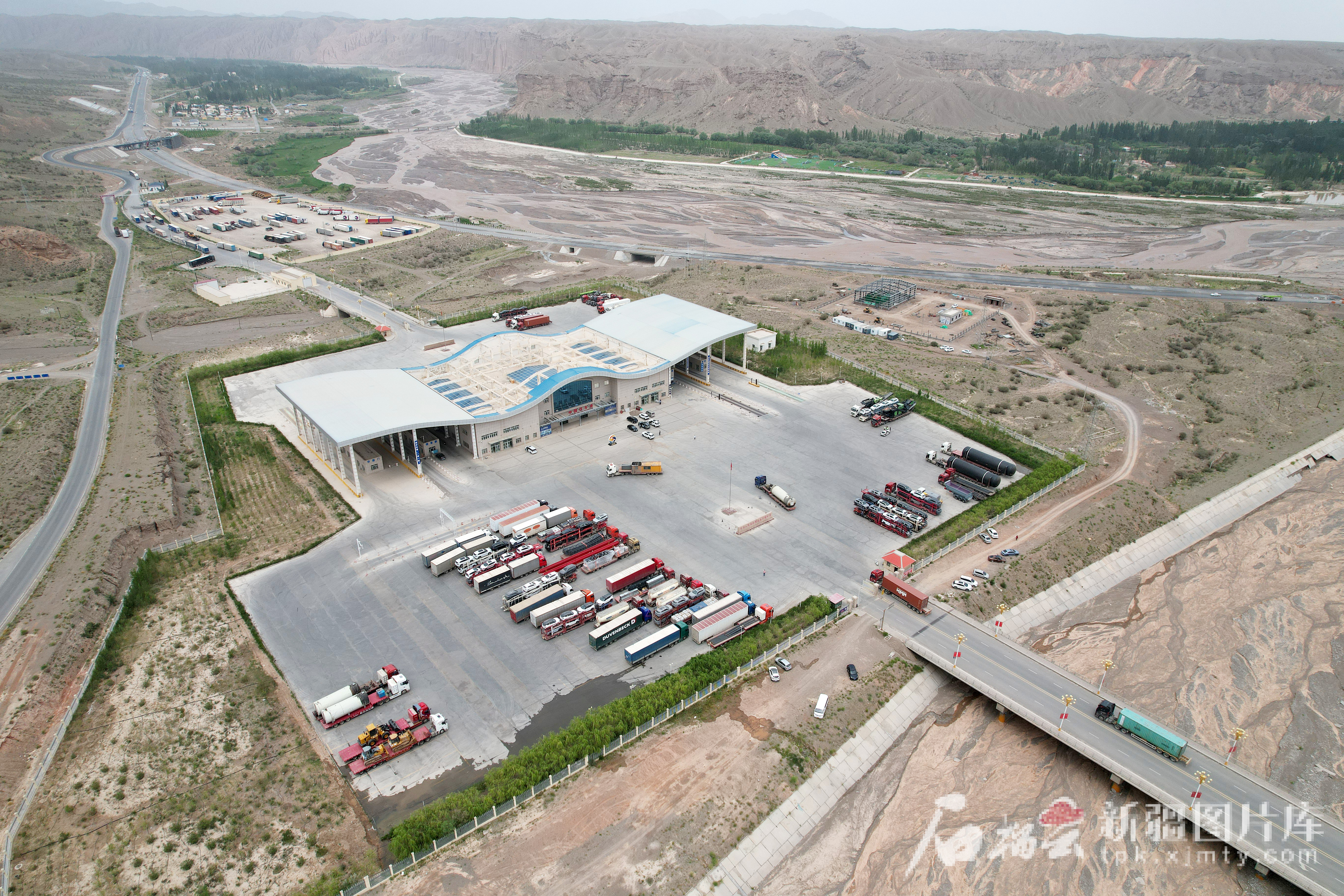 6月26日,从空中俯瞰吐尔尕特口岸全貌。