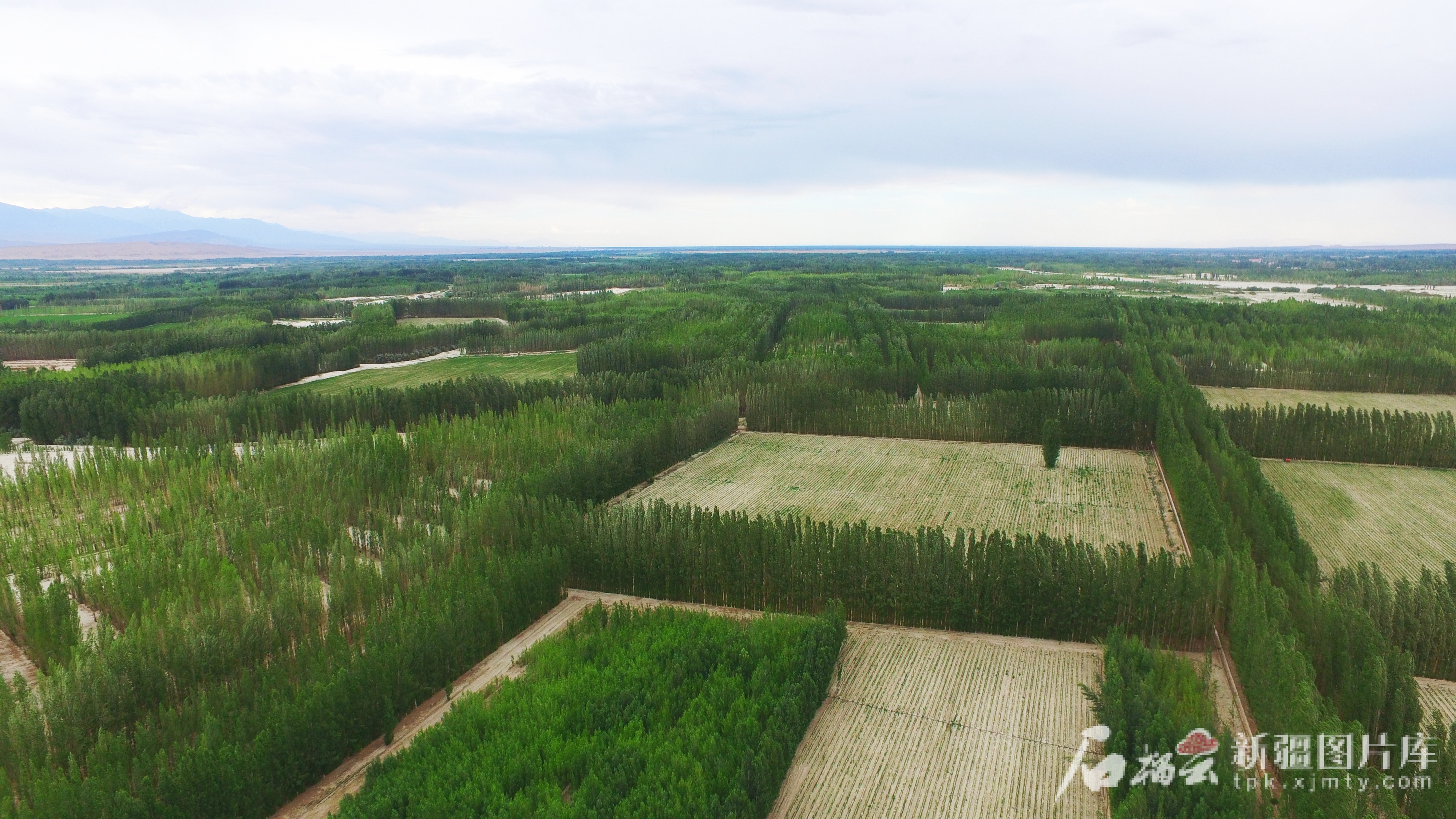 2023年8月,和静县哈尔莫敦镇西北沙漠区沙河子治理区的防风治沙林。高那清 摄
