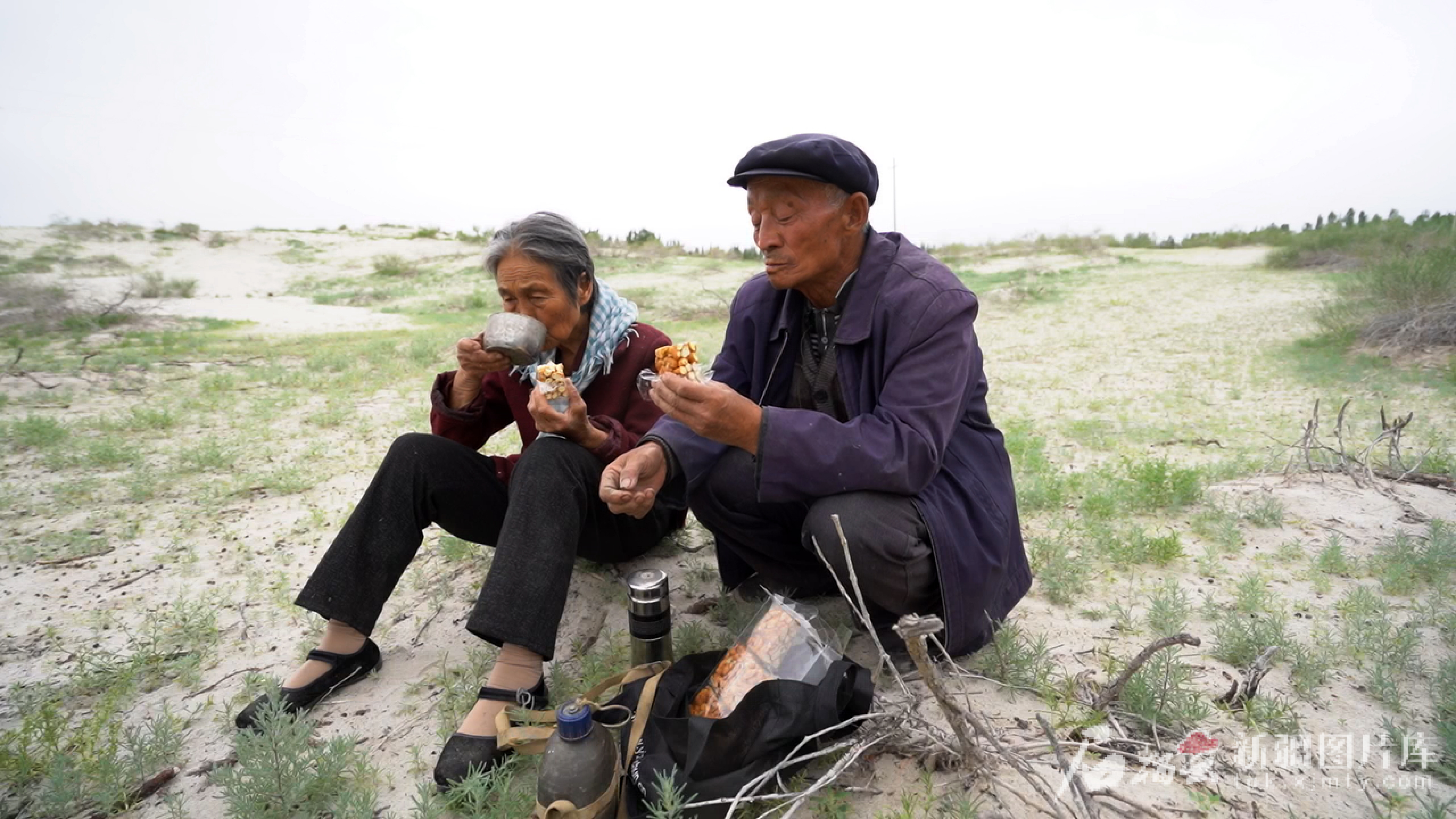 2019年4月,付志周夫妇在植树间歇吃午饭。巴音达来 摄