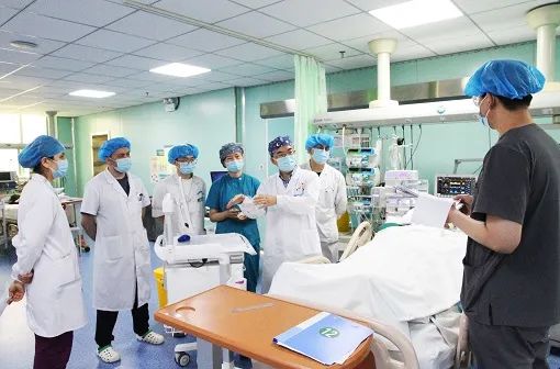 杨从山(右三)在重症医学科床旁查房。