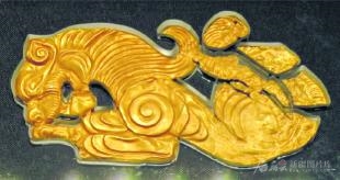 托克逊县阿拉沟墓地出土的狮虎形金箔饰。天山网-新疆日报记者王新红摄