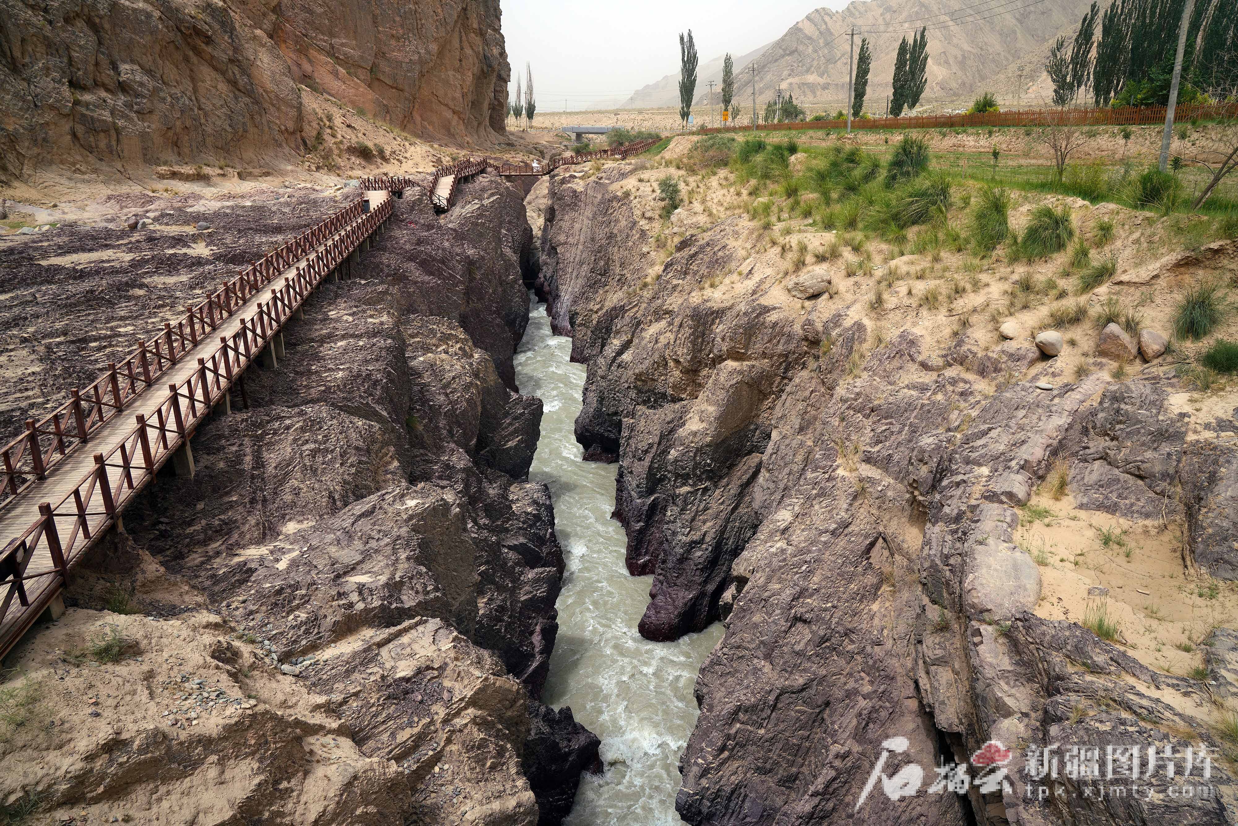 7月9日,皮山县垴阿巴提塔吉克族乡康阿孜村村口的“一线天”景点,约20米深的峡谷里水流湍急。