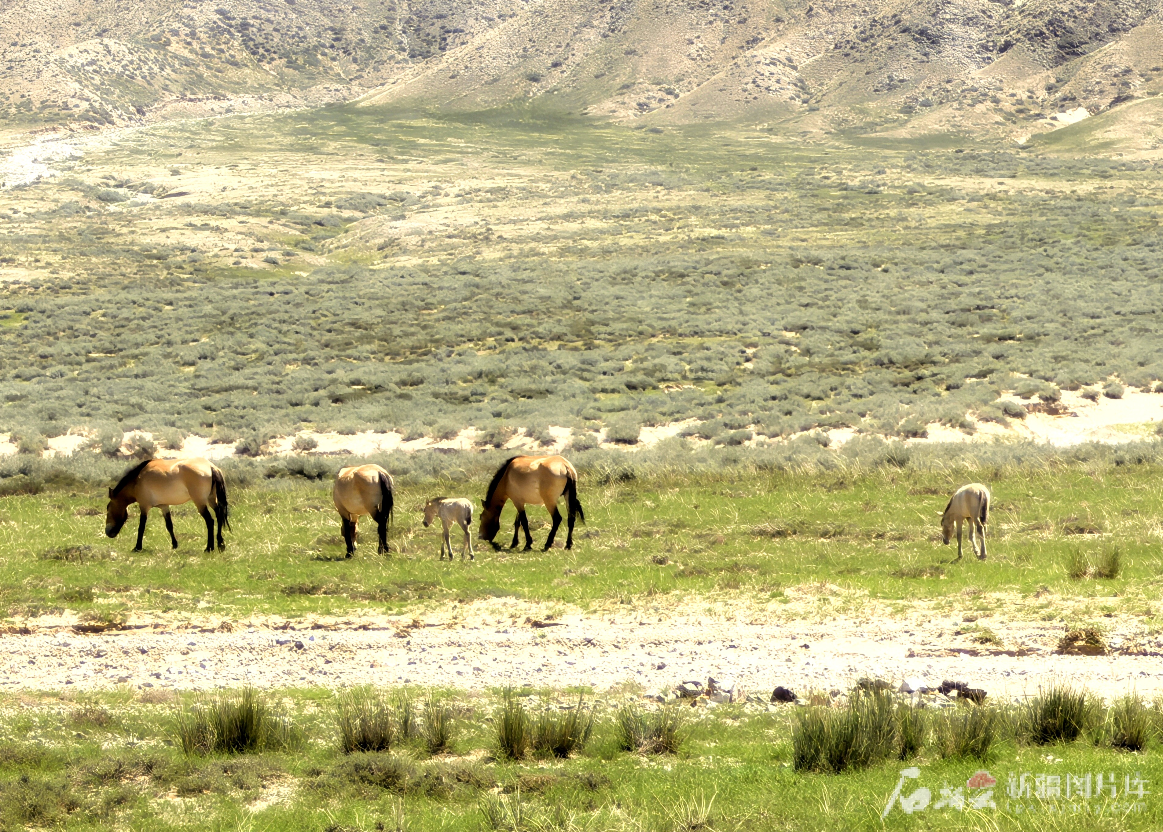 随后所见的野马家族,尽责守护的头马、温顺安详的母马和欢快蹦跳的小马驹,共同构成了一幅生机盎然的“山居图”。