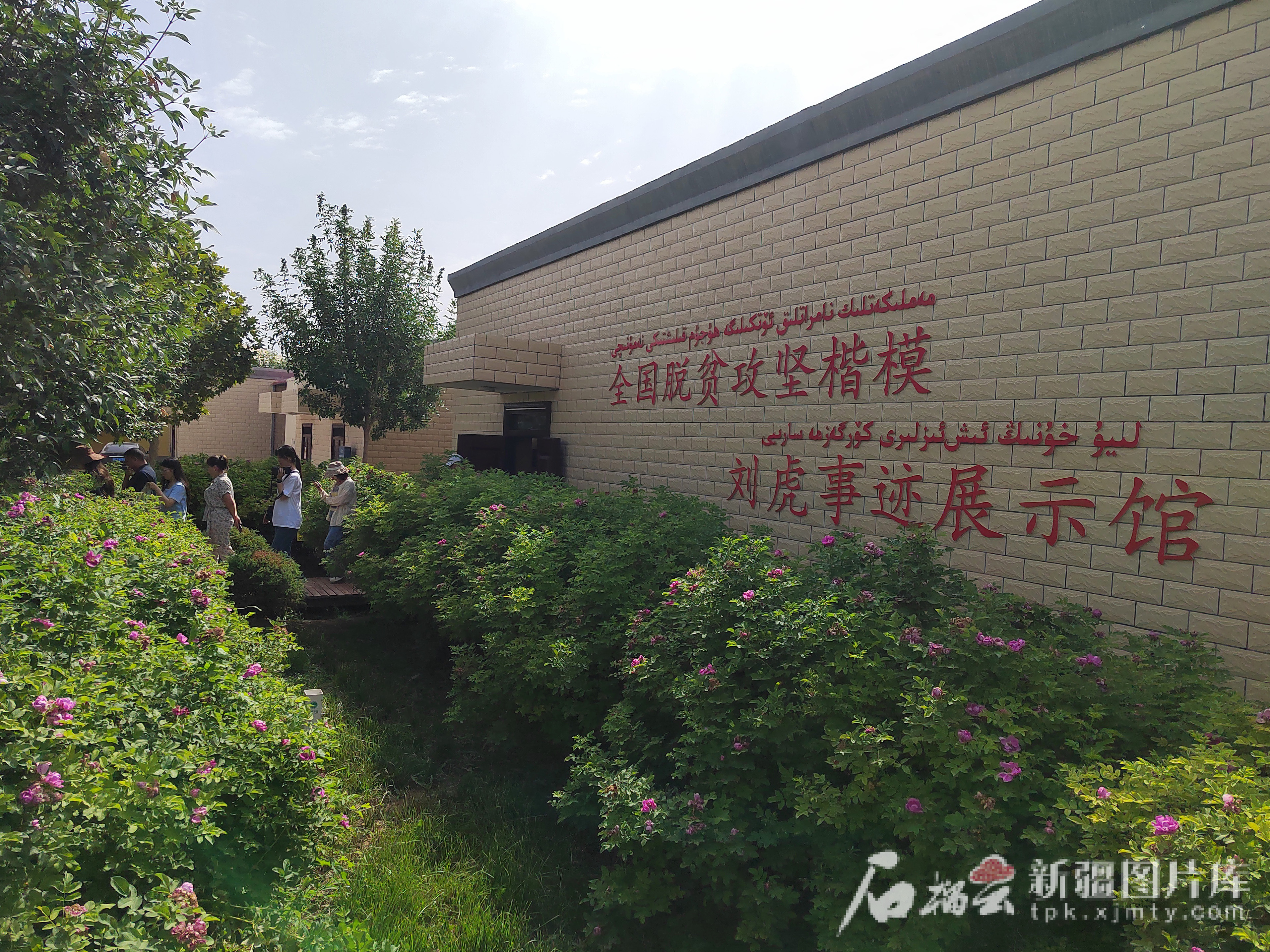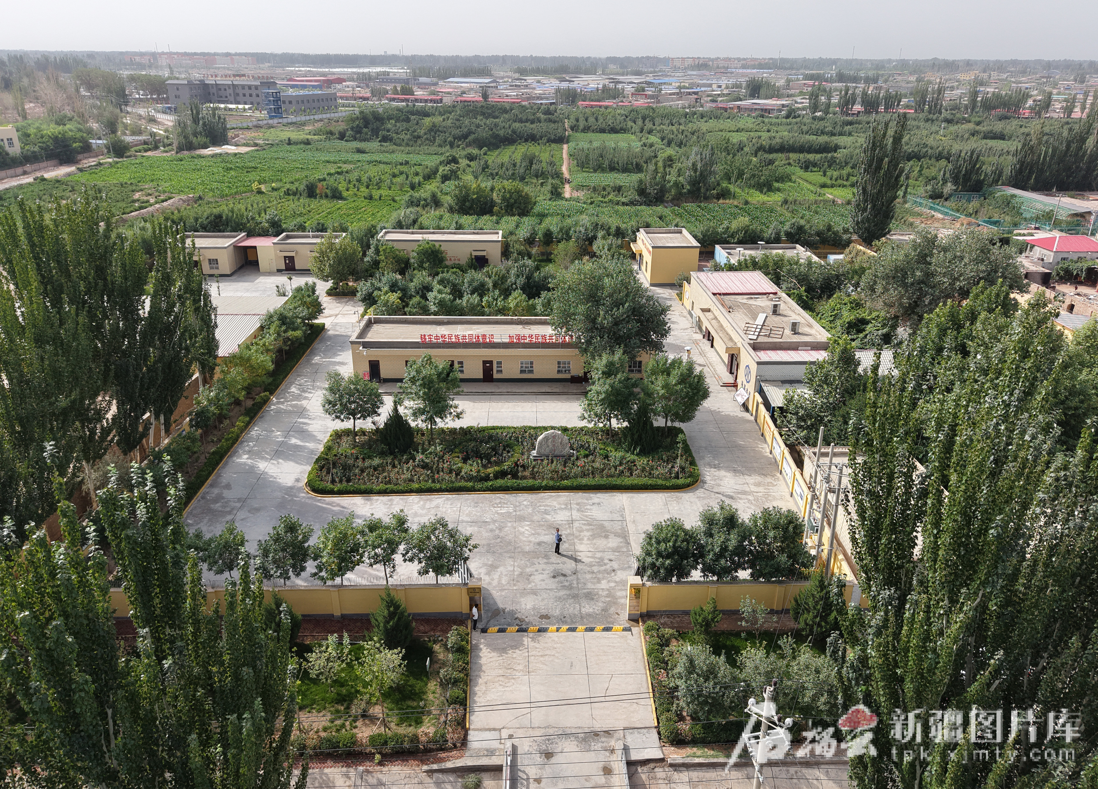 8月8日,俯瞰喀什地区爱国主义教育基地——伽师县饮水思源展示馆和全国脱贫攻坚楷模刘虎事迹展示馆。