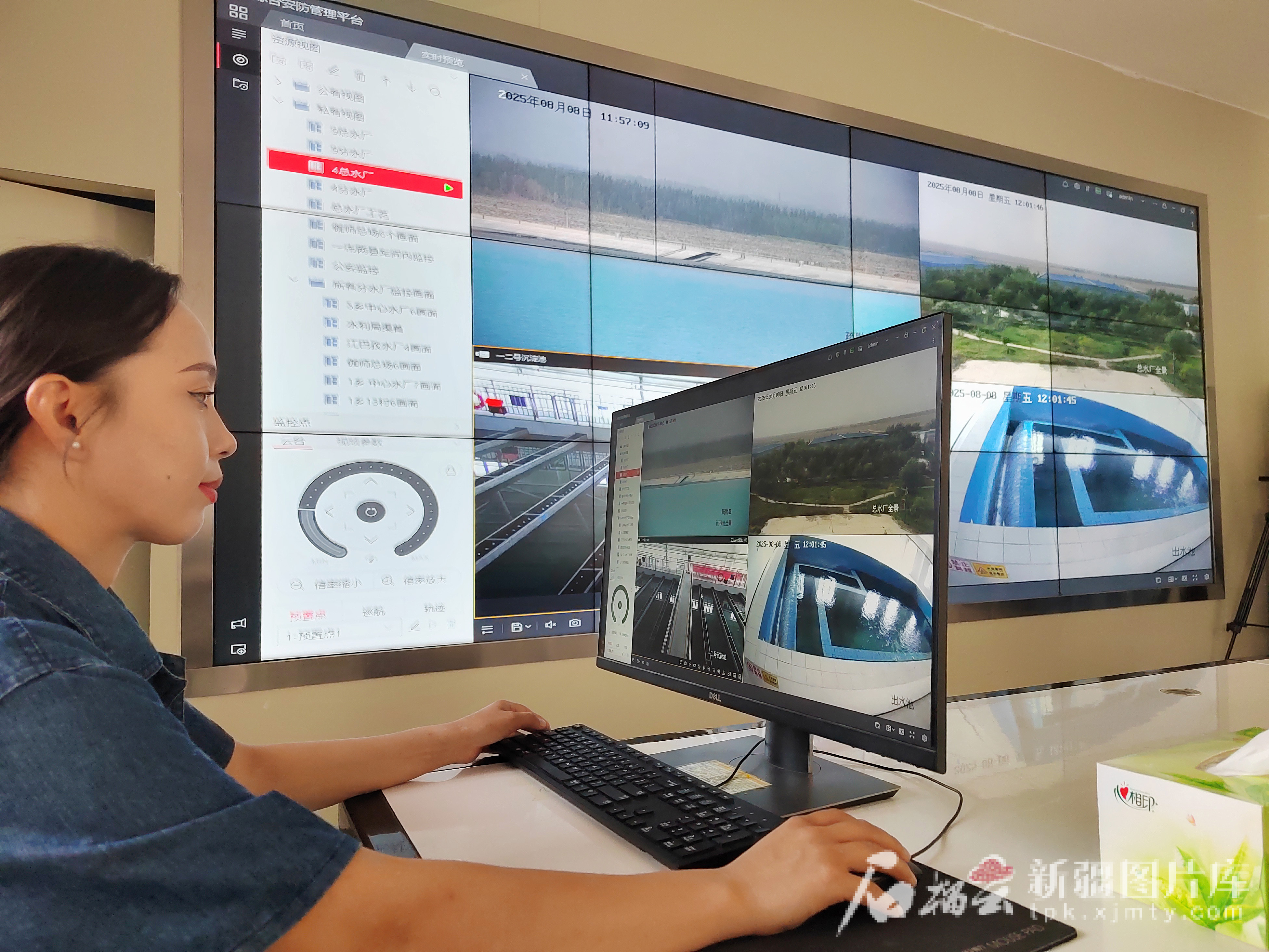 8月8日,工作人员在伽师县城乡饮水安全工程调度中心远程调试设备。