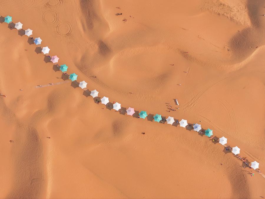 这是内蒙古鄂尔多斯达拉特旗响沙湾景区(8月1日摄,无人机照片)。