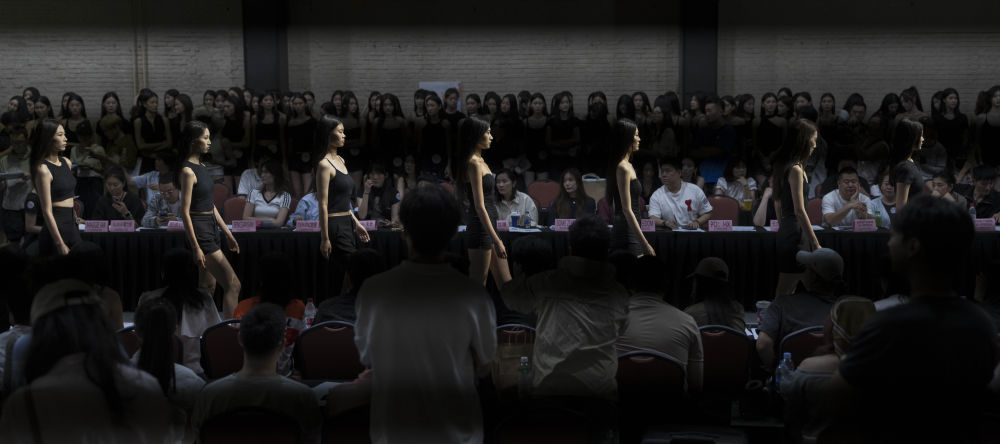 8月7日,在北京798·751园区举办的2025中国国际时装周(秋季)模特大面试上,品牌方与设计师代表在选择模特。