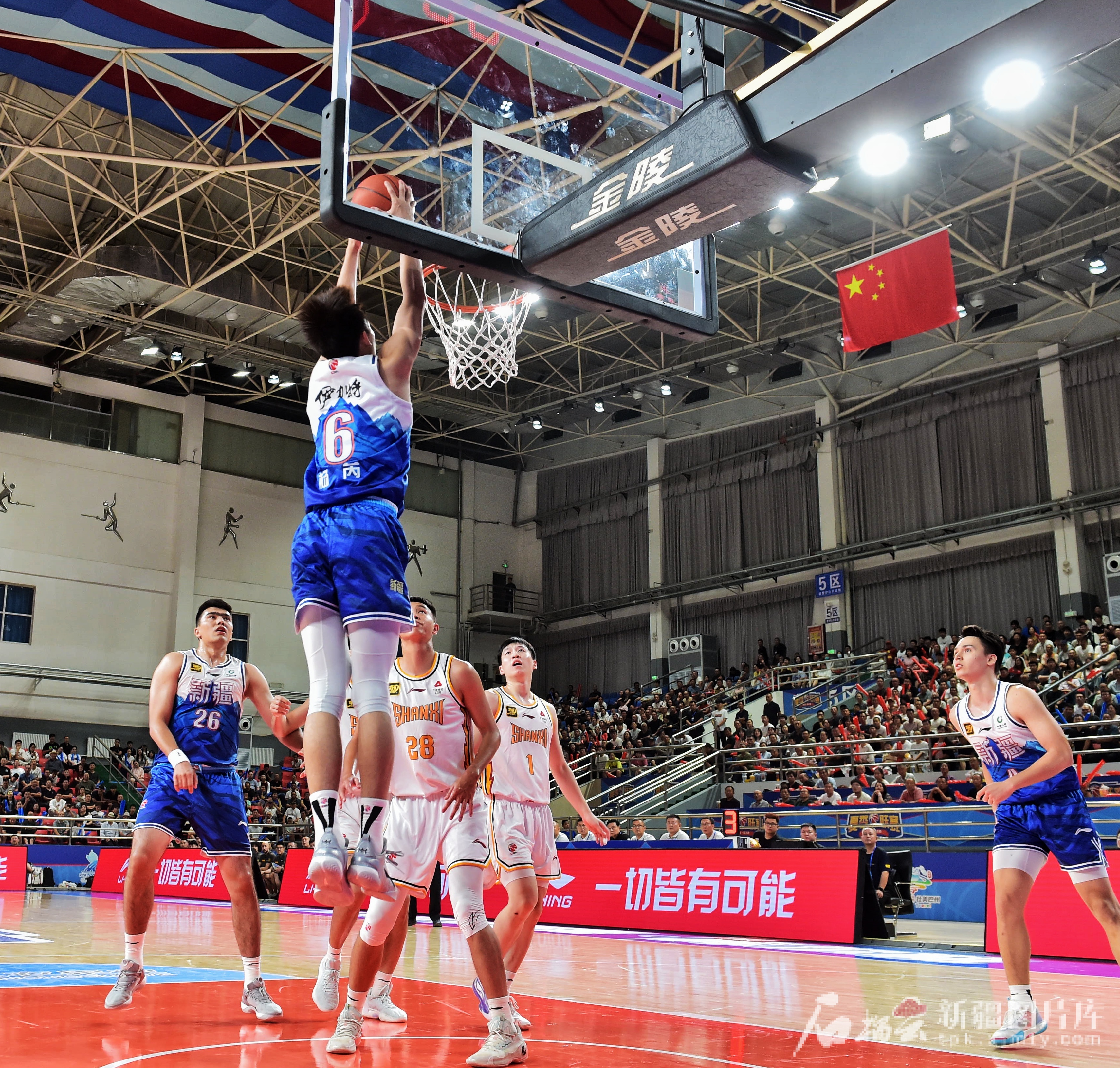 8月15日晚,CBA夏季联赛库尔勒站比赛中,新疆队队员杨芮在扣篮。石榴云/新疆日报记者 王立华摄