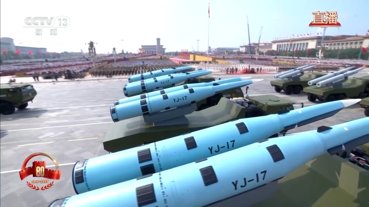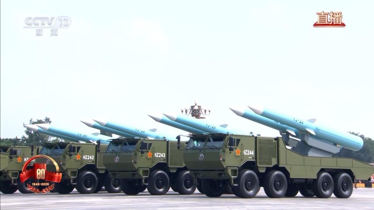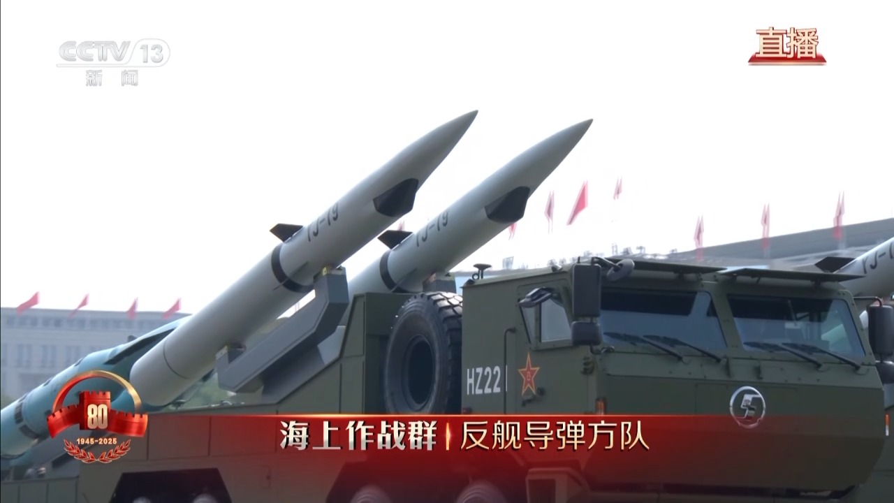 鹰击出鞘,叱咤海空。反舰导弹方队,由鹰击-15导弹和鹰击-19、鹰击-17、鹰击-20高超声速导弹编成,可部署在舰载机、水面舰艇、潜艇等多种平台,射程远、速度快、毁伤强,是打击海上之敌的尖兵利器。