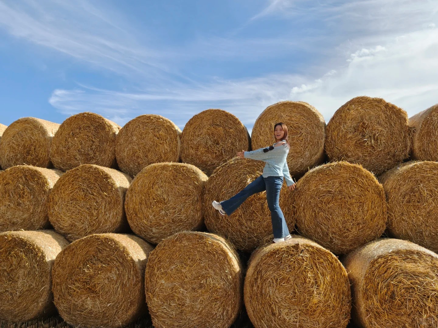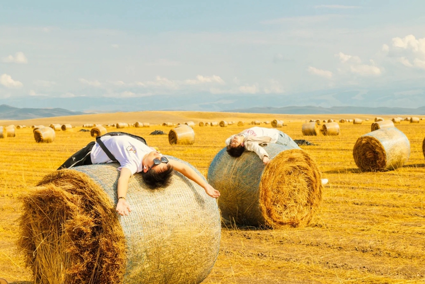 远离喧闹,在昭苏麦田的草垛上彻底“躺平”。来源:网友流浪星辰