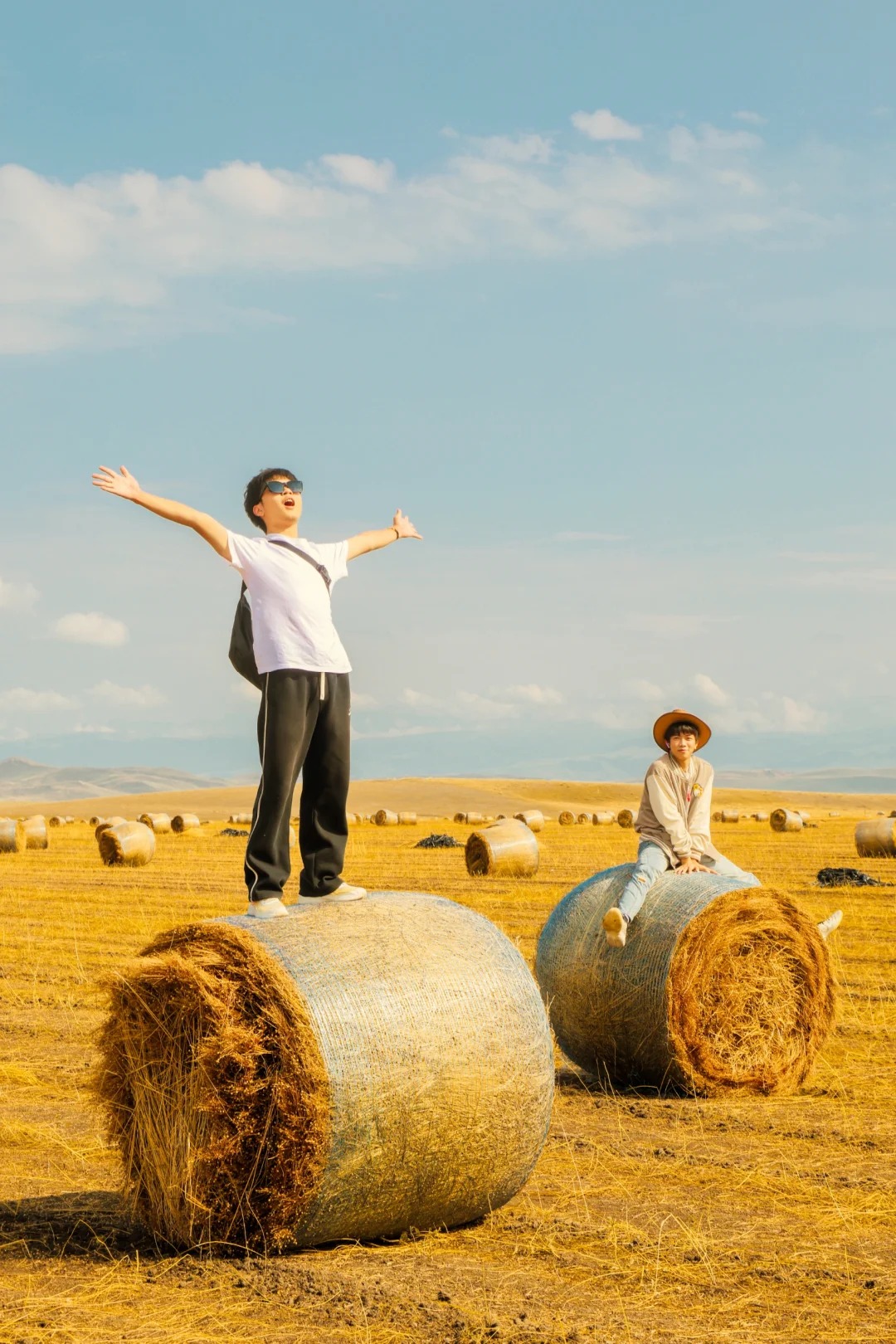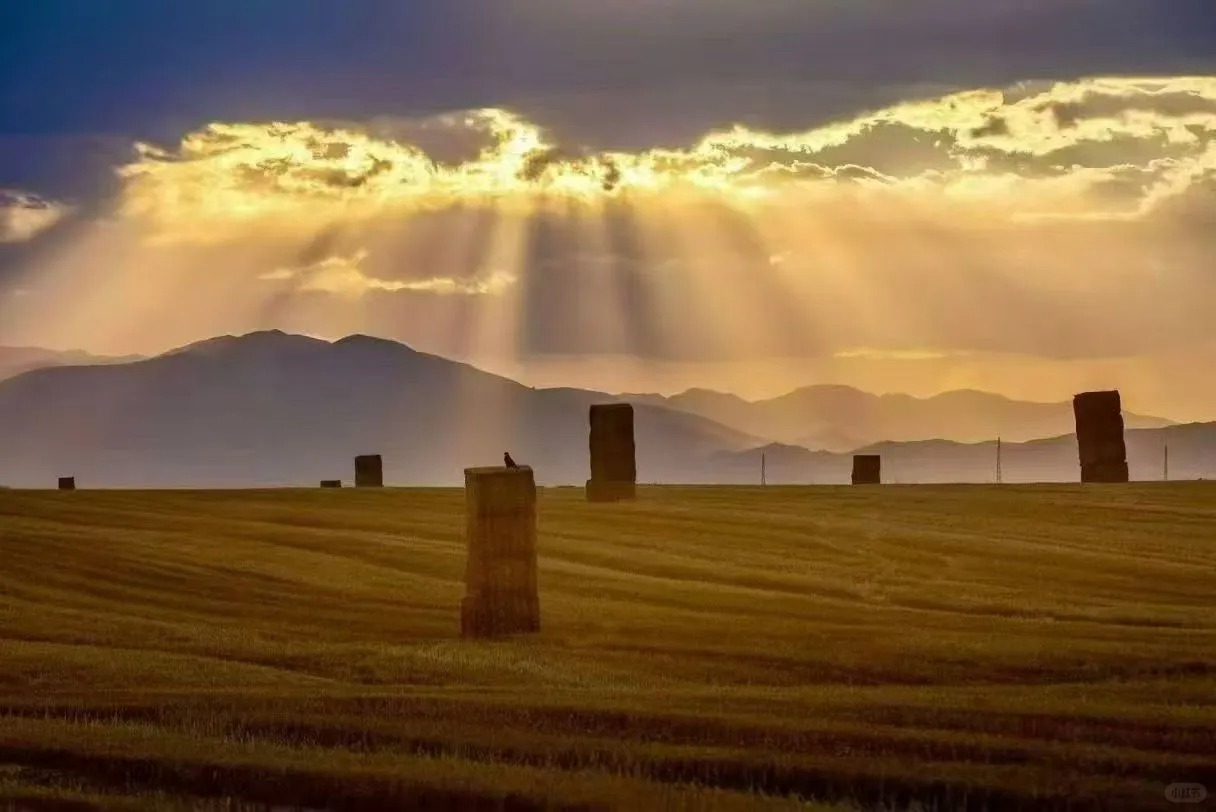 常小之:昭苏沿途有很多形状的草垛子,一眼望不到边,下车随处都可出片。在新疆旅行,不必执着于别人照片里的景点,自己发现的美才更独一无二。这个草垛子是我们开车沿途发现的,那时候阳光刚刚好,下车记录,每一张都是独属于我的新疆记忆。昭苏初秋的草垛子,散我心中意难平。