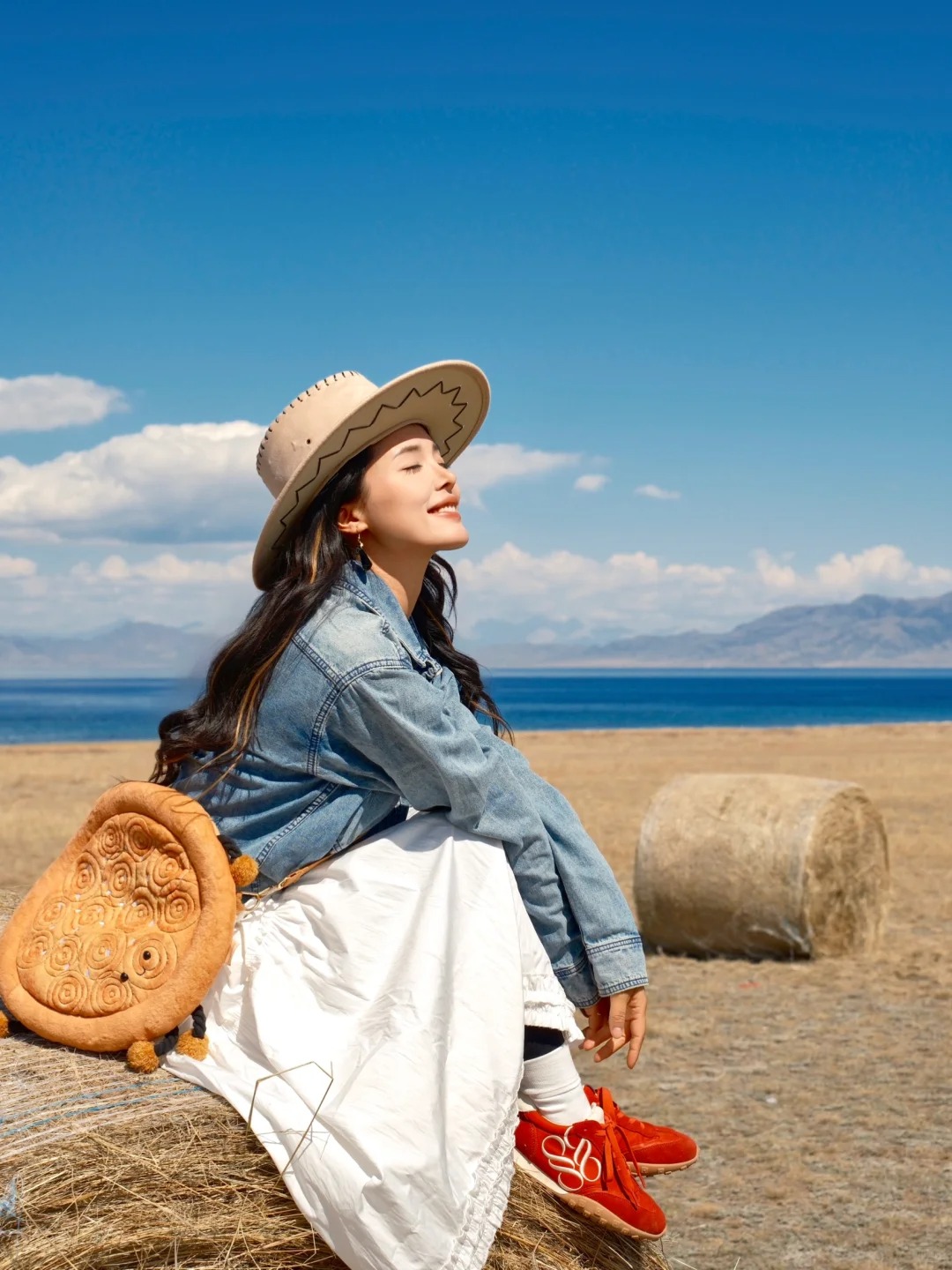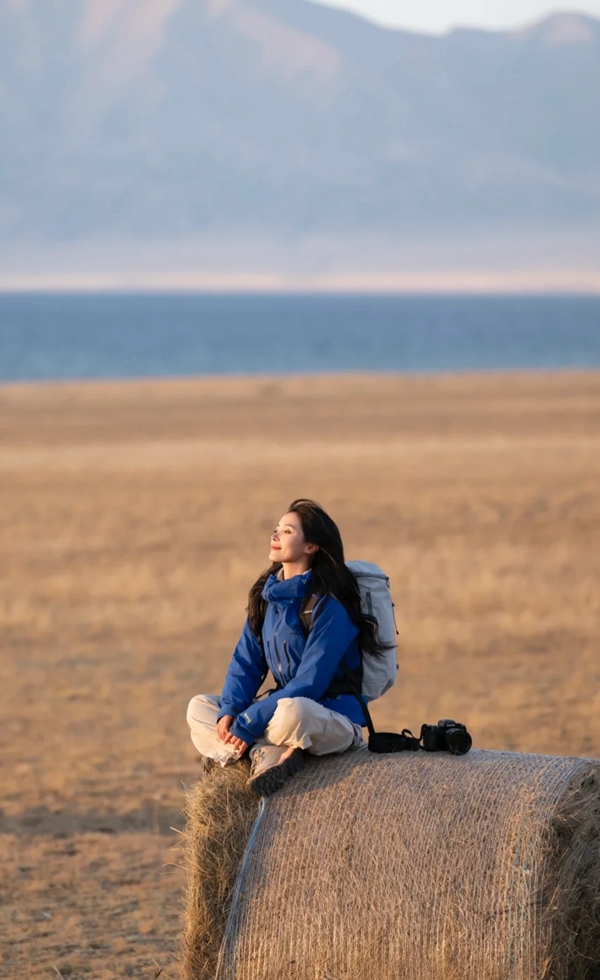 杨咩咩:曾经最怕“浪费时间”,旅行要日行三万步,打卡所有景点才算回本,直到在赛里木湖岸边,被一群可爱的草垛没收了焦虑。 那天原本计划环湖徒步,却莫名坐在草堆上不动了,看云从雪山脊滚成棉花糖,看蓝墨水般的湖面被风揉皱3个小时,只做了一件事:呼吸和发呆。