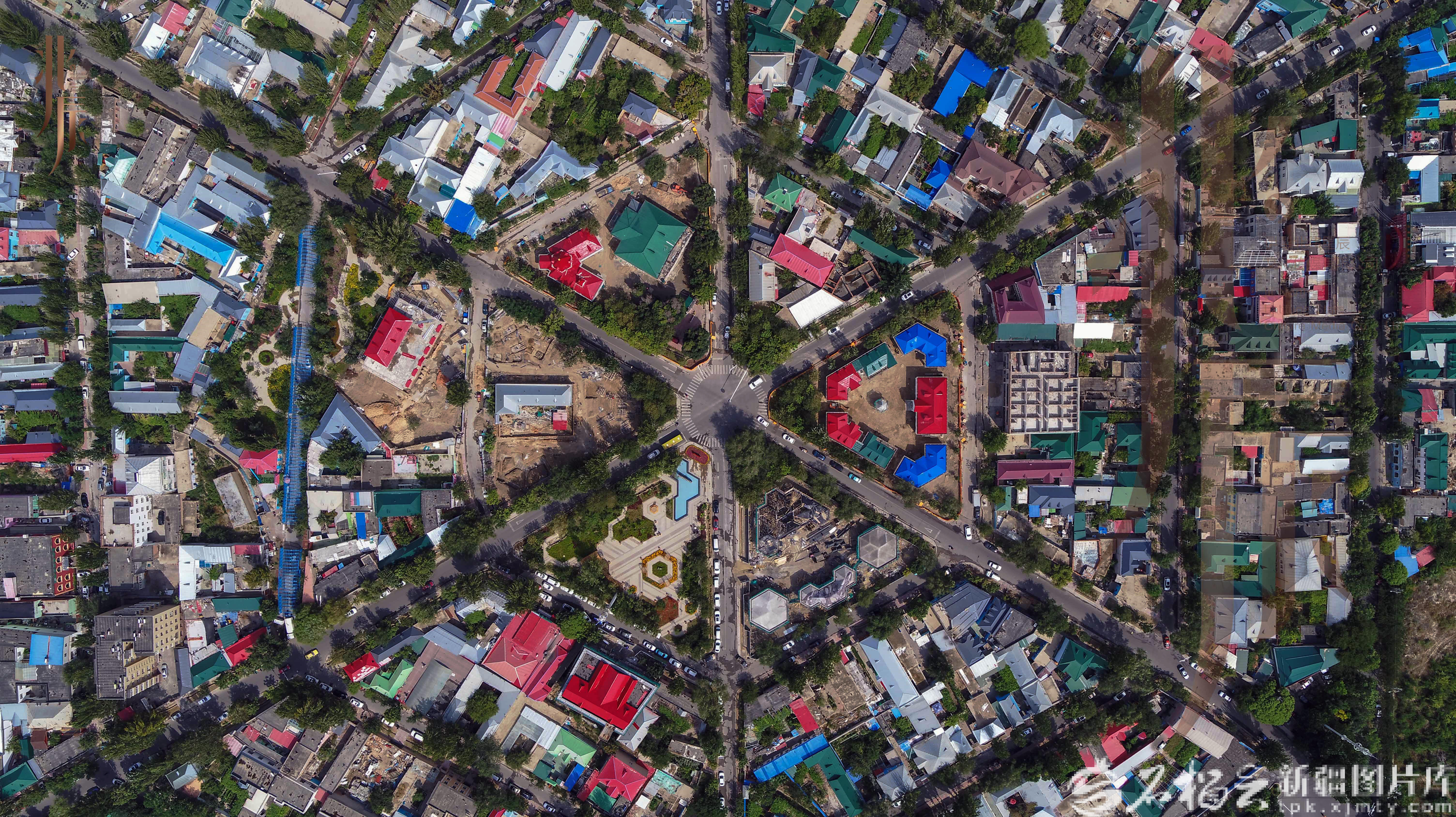 俯瞰伊宁市六星街。(9月8日无人机摄)