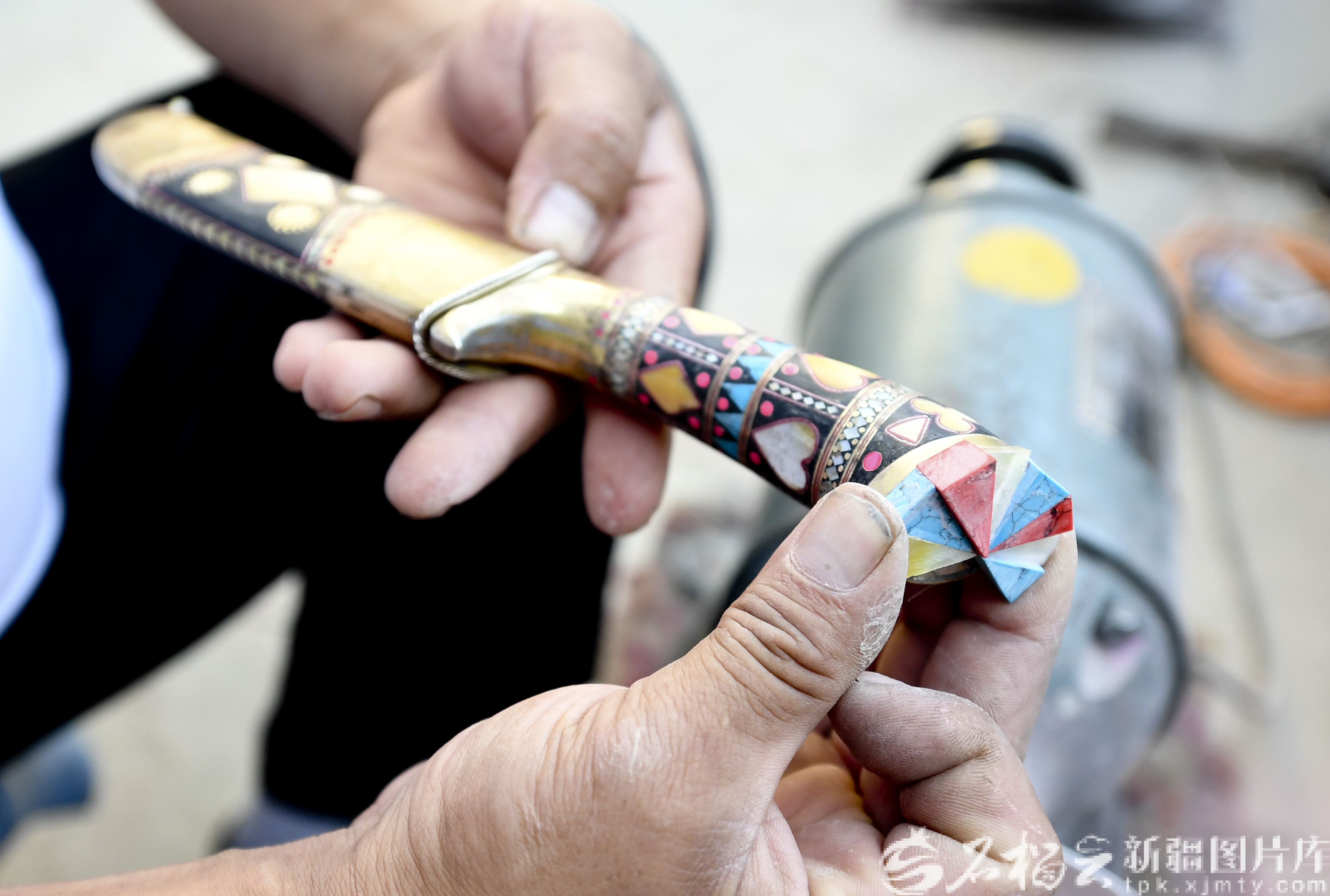 9月11日,小刀村的村民在为小刀镶嵌宝石。