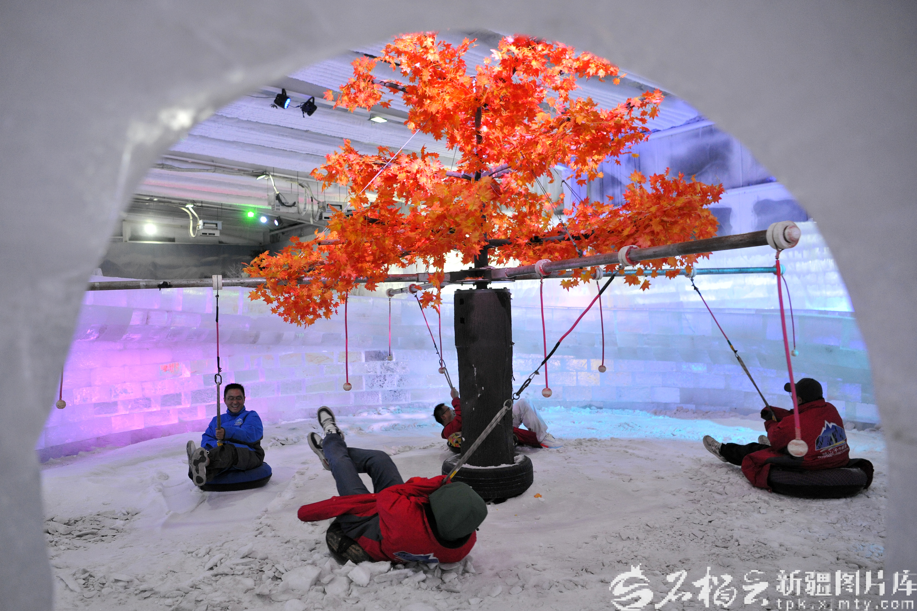 9月11日,游客在景区的冰雪大世界玩雪圈。