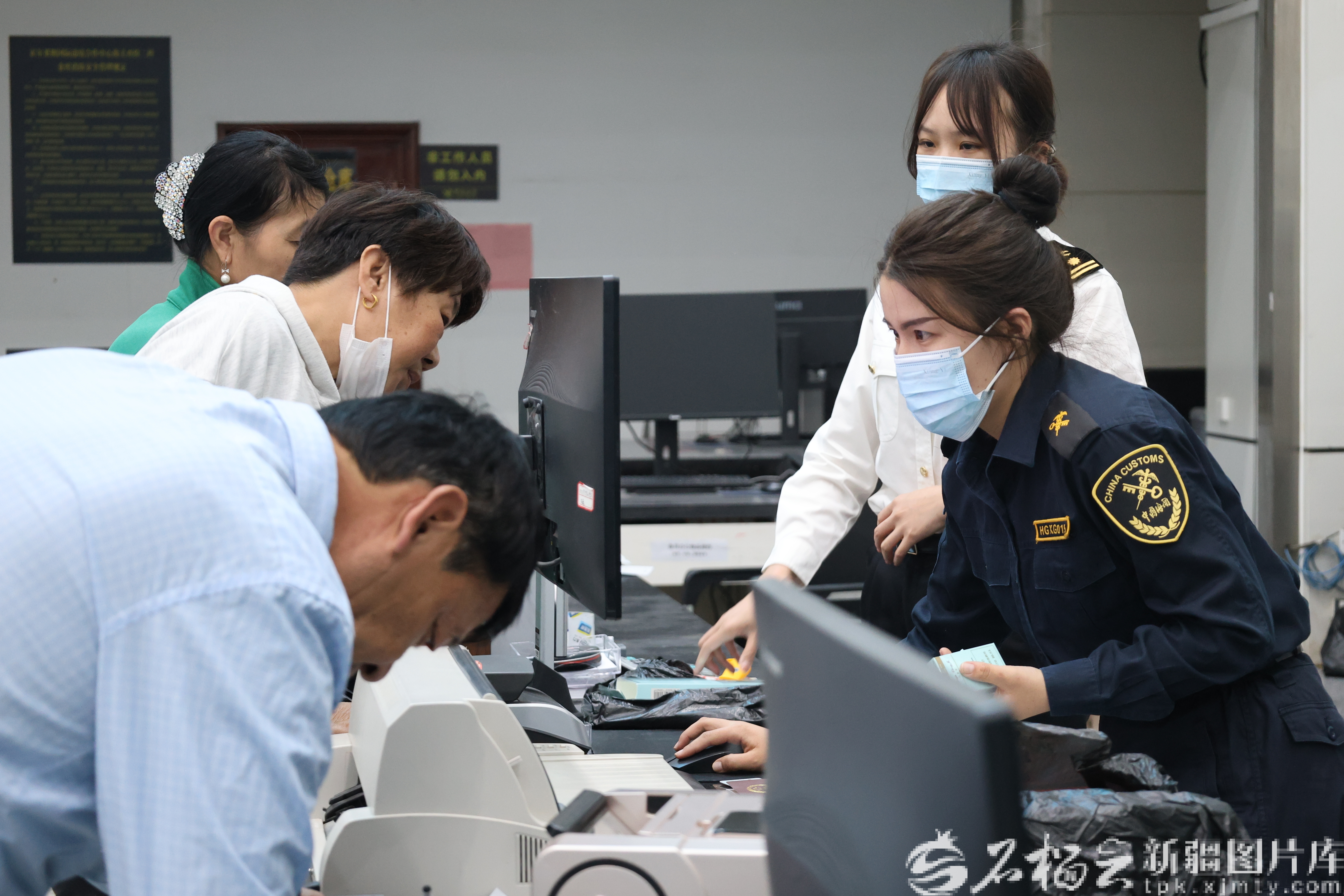 8月28日,霍尔果斯国际边境合作中心海关关员在旅检现场为旅客办理相关手续。 吴颖 摄