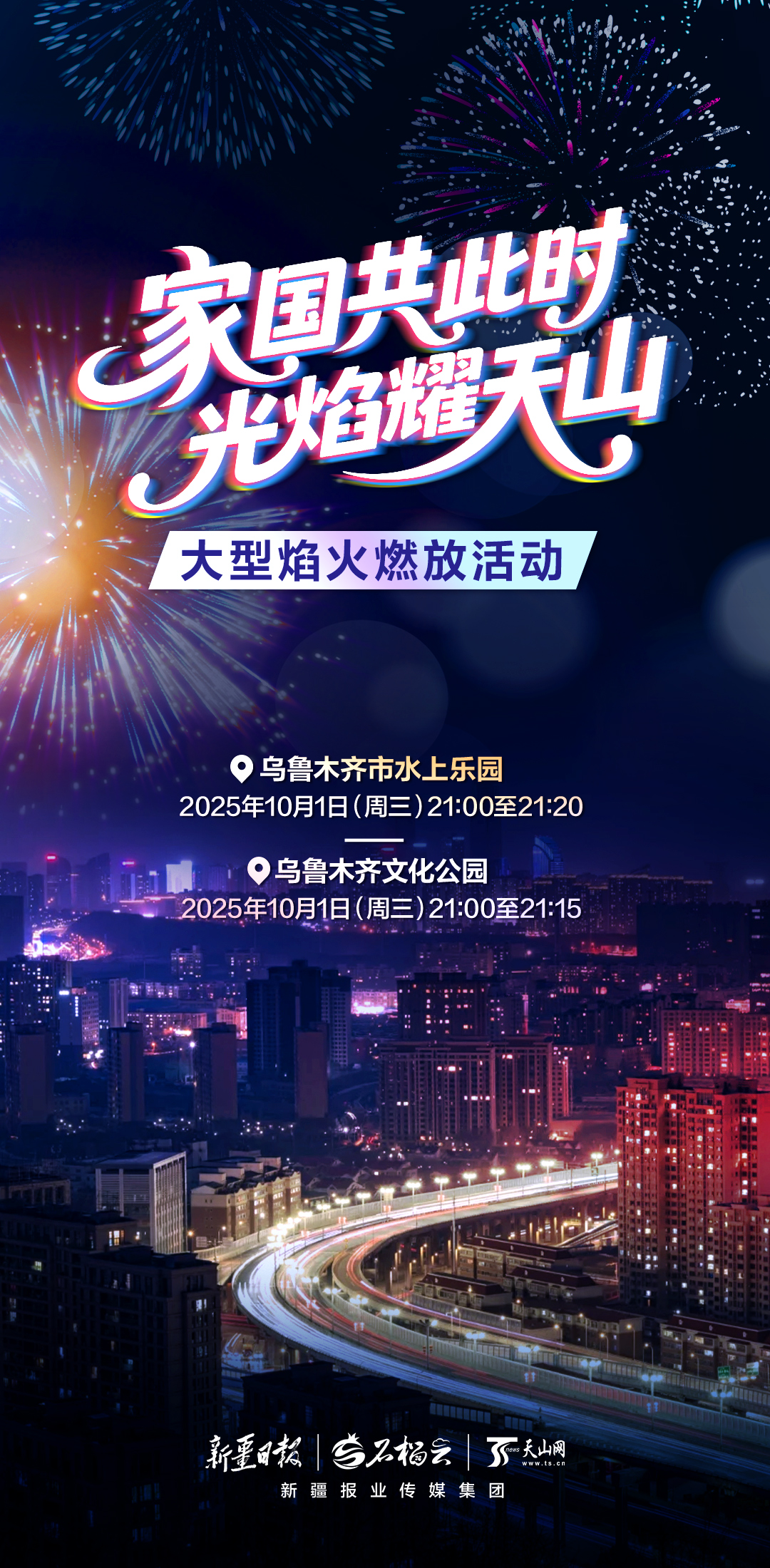 海报丨乌鲁木齐将举行“家国共此时 光焰耀天山”大型焰火燃放活动