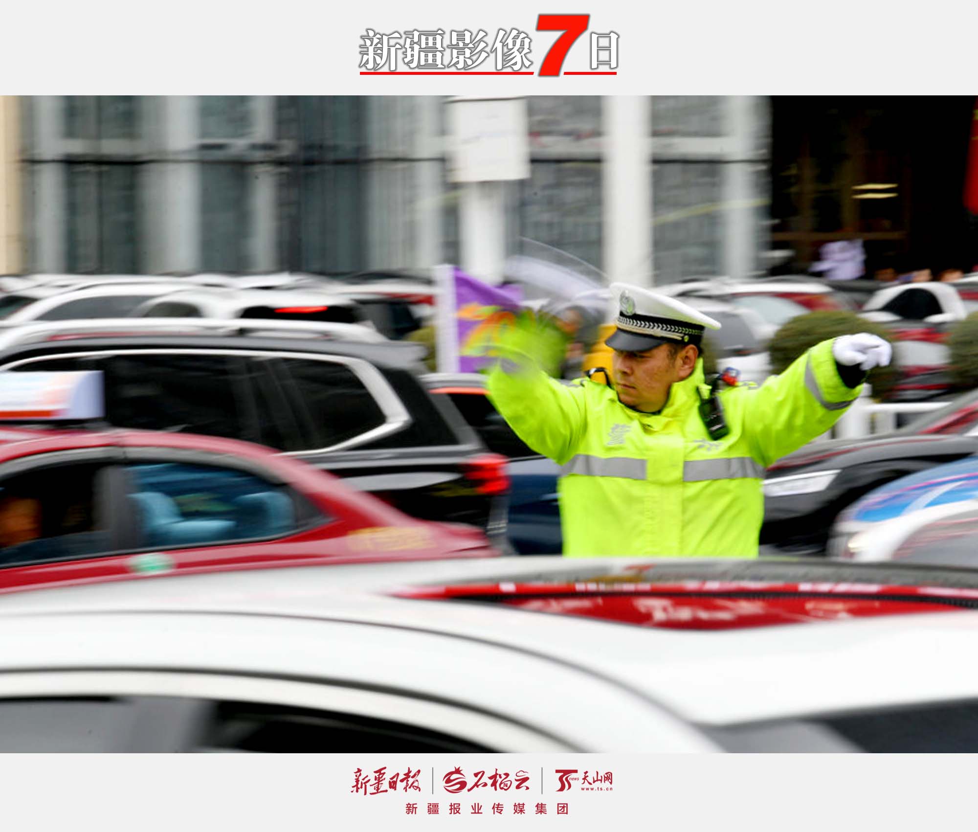 10月2日,交警在乌鲁木齐市西大桥路段指挥交通。当日,国庆中秋假期第二天,乌鲁木齐市各行各业的劳动者在假期里的坚守和奉献,换来了人们快乐的假期。天山网-新疆日报记者 邹懿 摄