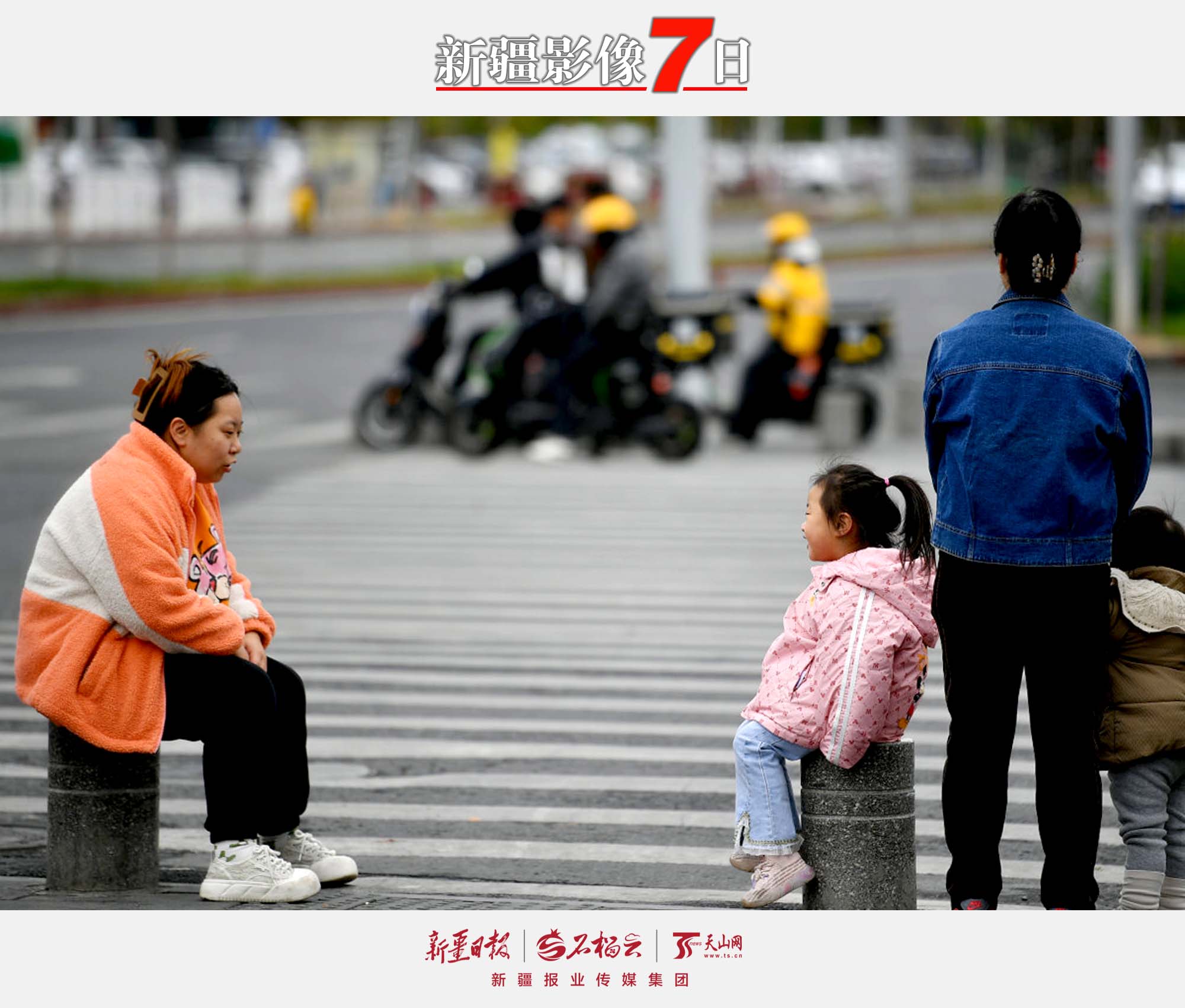 10月2日,一对母女在通过乌鲁木齐市河南路人行横道间隙相视而笑。当日,乌鲁木齐市最高气温较前日的24摄氏度直降16摄氏度,只有8摄氏度。天气转凉并没有降低市民节日出行的热情,大型商圈、交通要道等处人流车流量较大。天山网-新疆日报记者 邹懿 摄