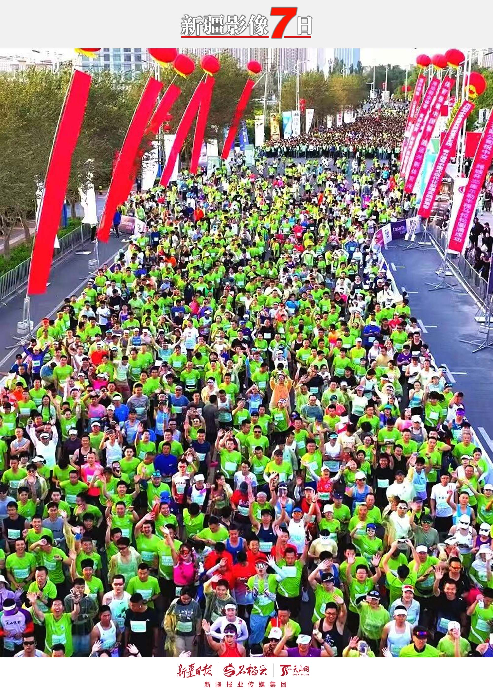 10月2日,万人竞逐马拉松赛。当日,由库尔勒市人民政府、巴州文化体育广播电视和旅游局联合主办的中交·绿城杯2025库尔勒半程马拉松燃情启幕,来自全国22个省(区)市的近万名跑者齐聚“塞外明珠·山水梨城”,在秋日赛道上感受城市魅力与运动激情。甘明亮 摄