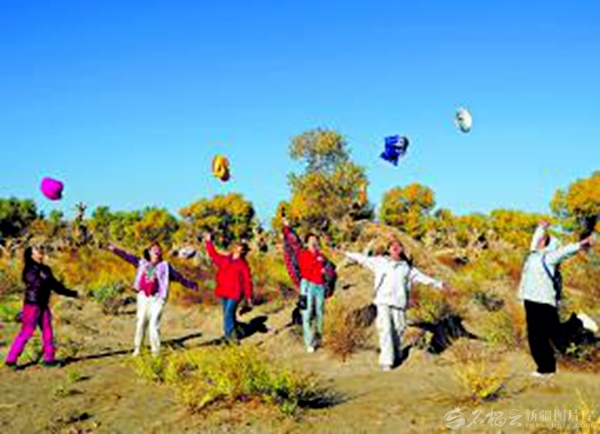 10月2日,游客在伊吾胡杨景区拍照留念。眼下,该景区47.6万亩胡杨林进入最佳观赏期,吸引众多游客前来领略胡杨美景。把余知摄