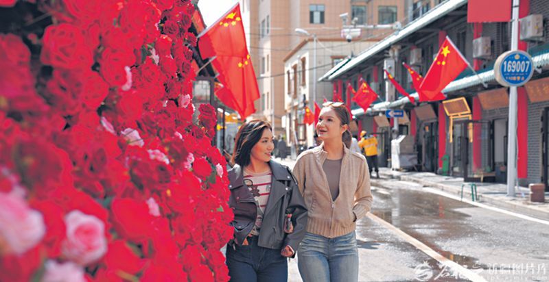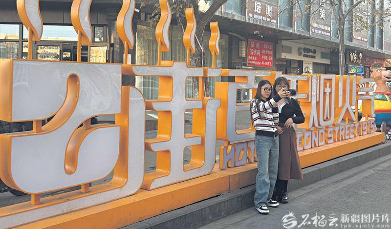 近日,游客在和田二街打卡留念。杜丽娜摄