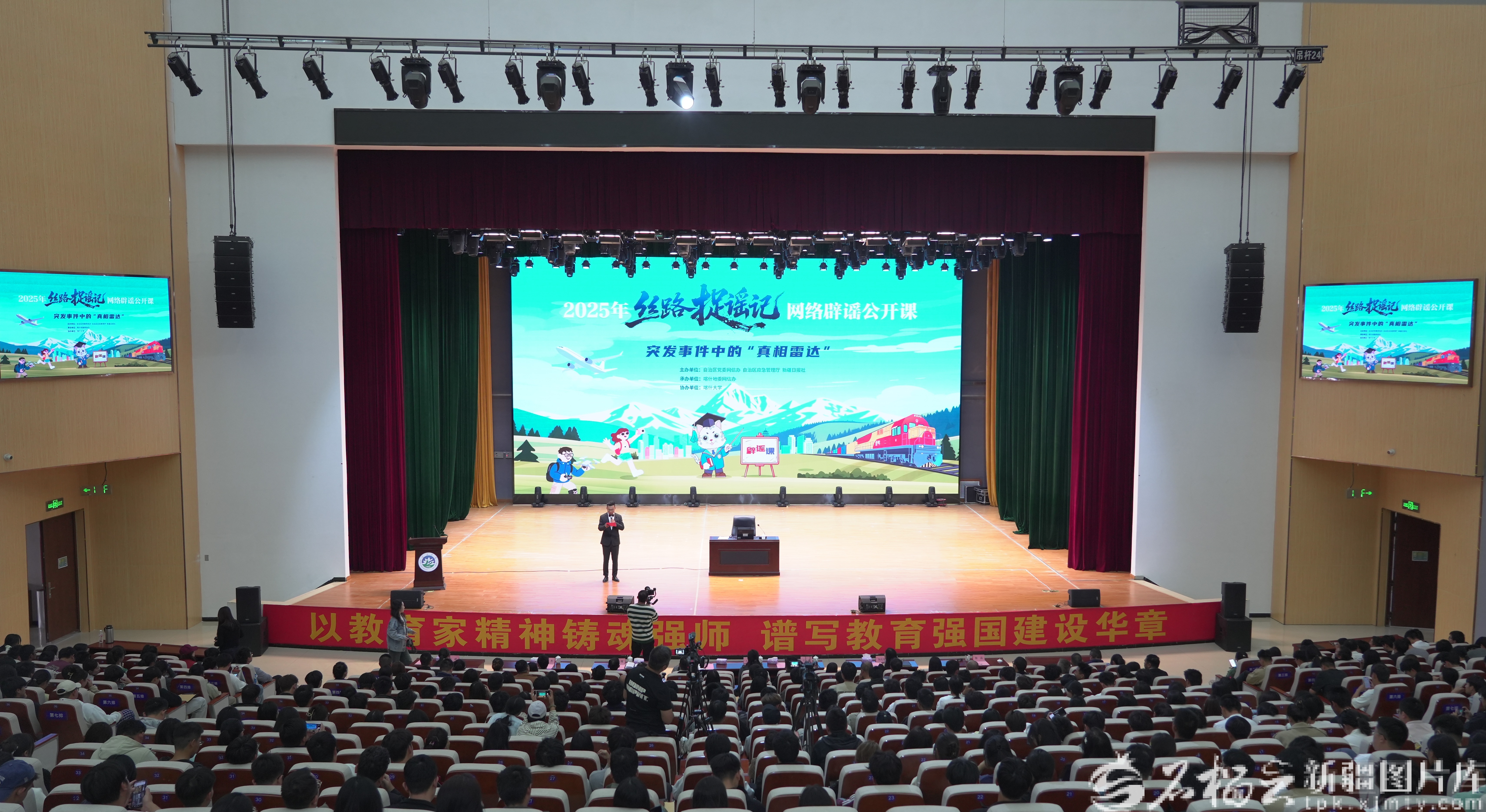 此次网络辟谣公开课是2025年新疆“丝路捉谣记”系列活动的重要组成部分,由自治区党委网信办、自治区应急管理厅、新疆日报社共同主办,喀什地委网信办具体承办,喀什大学协办。从专家的深度解析到师生的艺术演绎,从互动答题的热烈氛围到青年学子的坚定表态,这场网络辟谣公开课,让“不信谣、不传谣”理念从理论走向实践,为长期营造清朗有序的网络氛围积蓄了源源不断的能量。