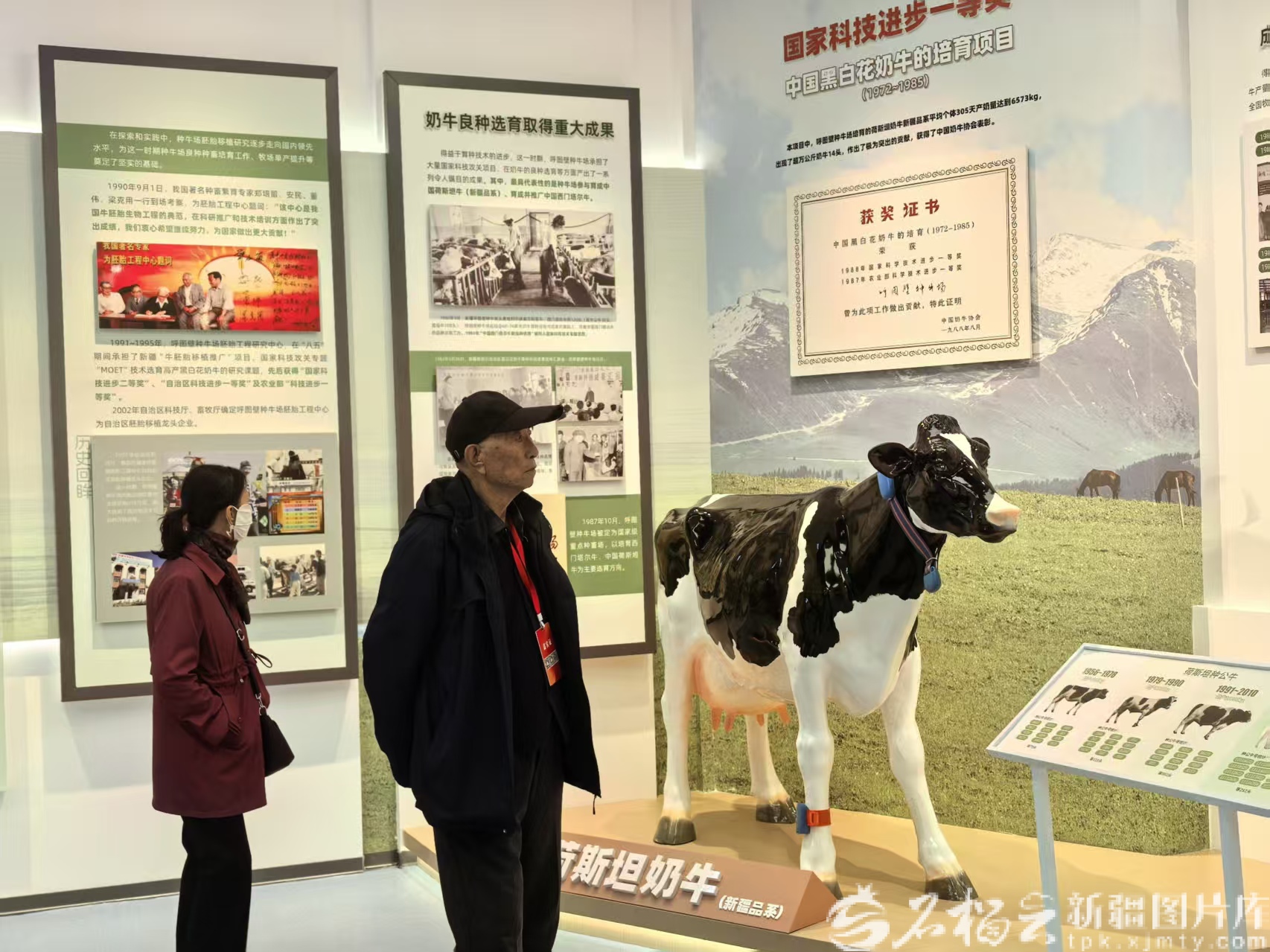 10月18日,呼图壁种牛场老职工在新落成的呼图壁种牛场文史馆参观。天山网-新疆日报记者 石鑫摄