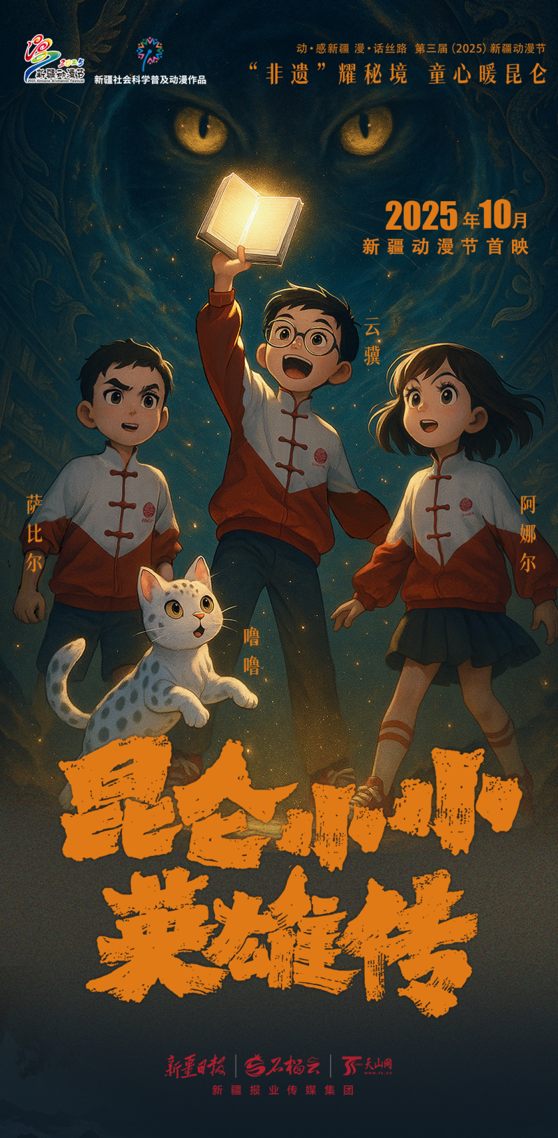 这部作品以中华优秀传统文化为底色,巧妙融合新疆地域特色与现代动画语言,讲述了3位新疆小朋友在昆仑仙境中冒险成长的奇幻故事。
