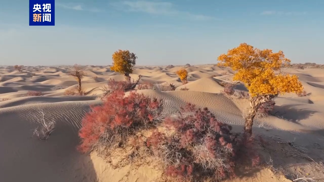 每年的10月中旬到11月中旬,是新疆的“胡杨时间”,河岸、沙漠、戈壁,都被一片片金色的胡杨树装点。这独一无二的景色背后,离不开科技的助力。