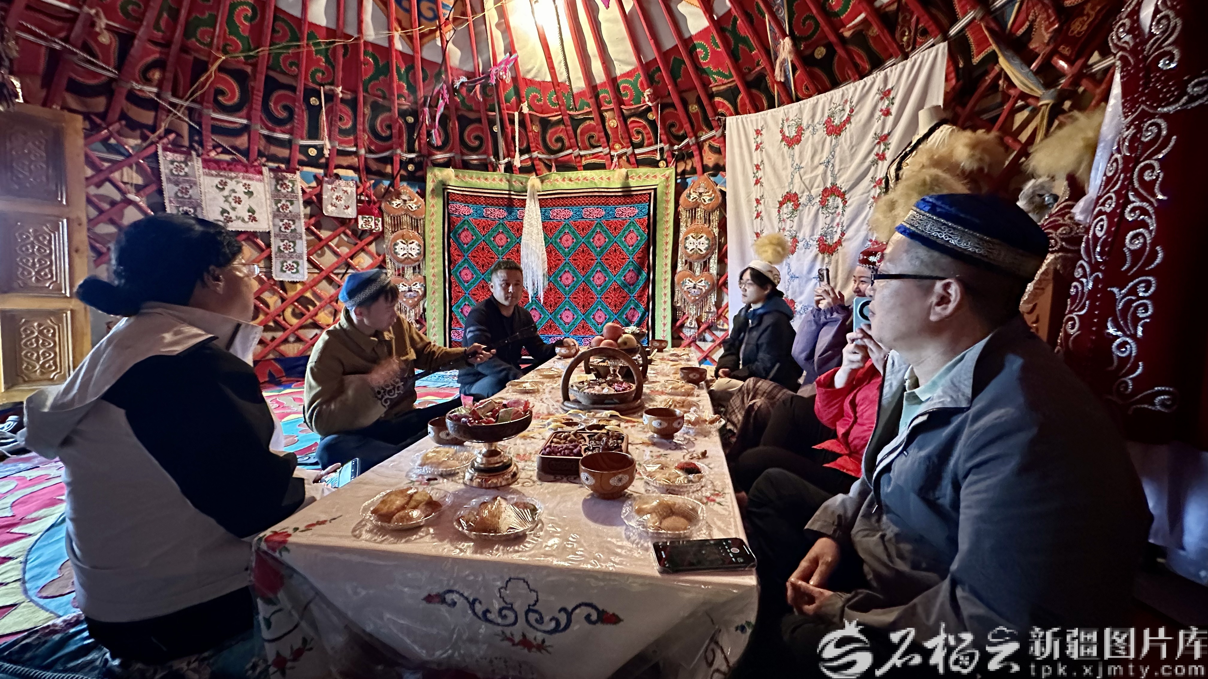 游客在牧民家中欣赏表演。迪丽胡玛尔·地力木拉提摄