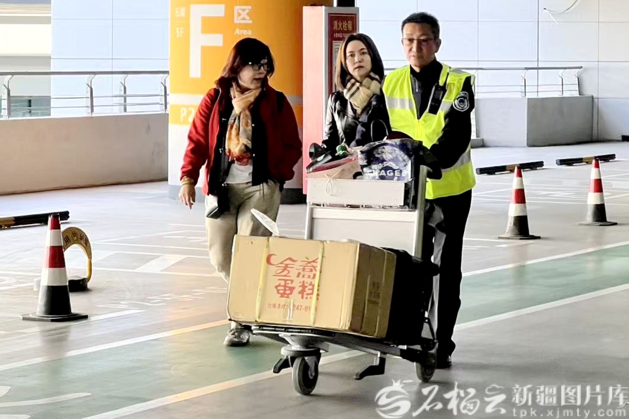 10月22日,乌鲁木齐天山国际机场工作人员帮助旅客转运大件行李。郑翔璐摄