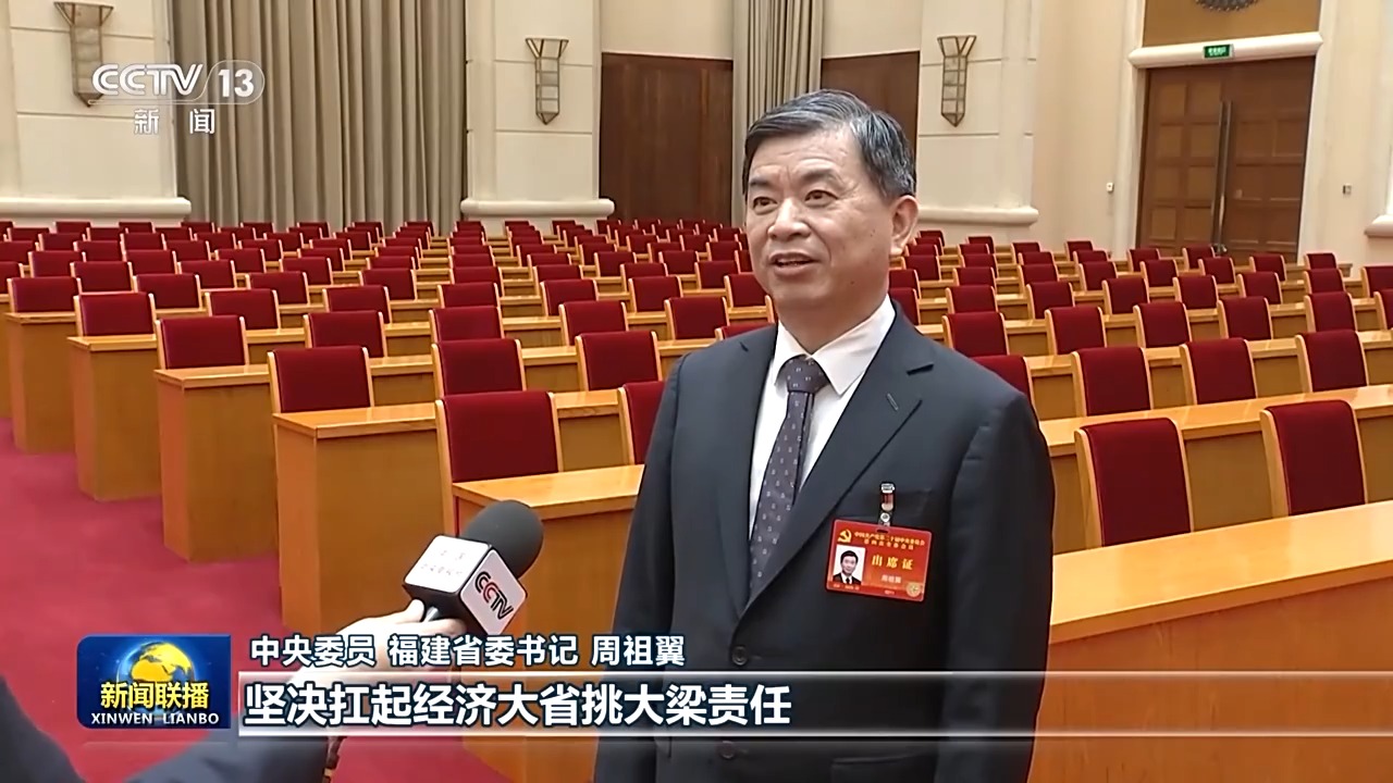 中央委员、福建省委书记 周祖翼:福建将认真学习贯彻四中全会精神,坚决扛起经济大省挑大梁责任,培育创新动能、筑牢实体根基、推动共同富裕,更好服务全国发展大局。坚持以通促融、以惠促融、以情促融,高质量推进两岸融合发展示范区建设,更好服务中央对台工作大局,奋力谱写机制活、产业优、百姓富、生态美的新福建新篇章,努力在中国式现代化建设中奋勇争先。