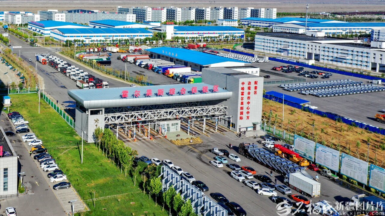 车辆在霍尔果斯综合保税区排队办理通关手续(资料图)。
