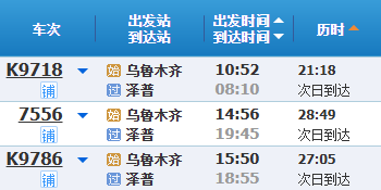 乌鲁木齐至泽普列车时刻。