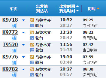 乌鲁木齐至轮台列车时刻。